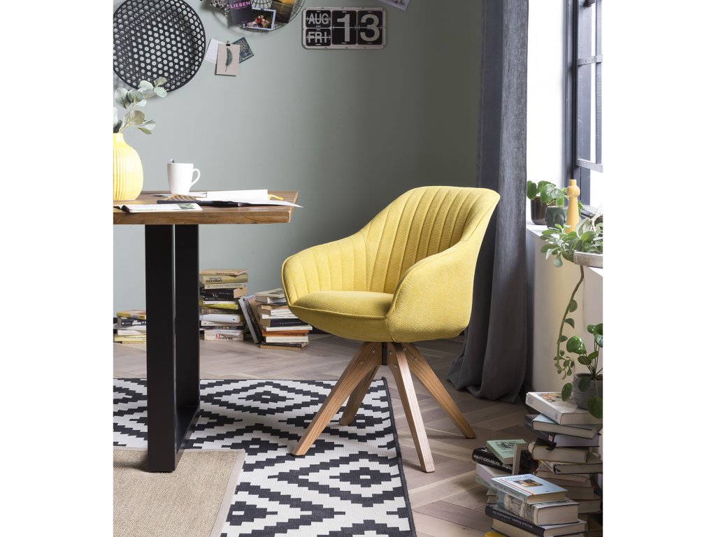Pouze na objednání, dodání do 30 dnů, textilní potah, materiál 100% PES, barevné provedení žlutá, nohy masiv dub, lakované provedení, výška sedu 47,5 cm, šířka sedu 57 cm, hloubka sedu 44 cm, výška područek 61-66 cm, otočná o 360°.Doplňkové parametry