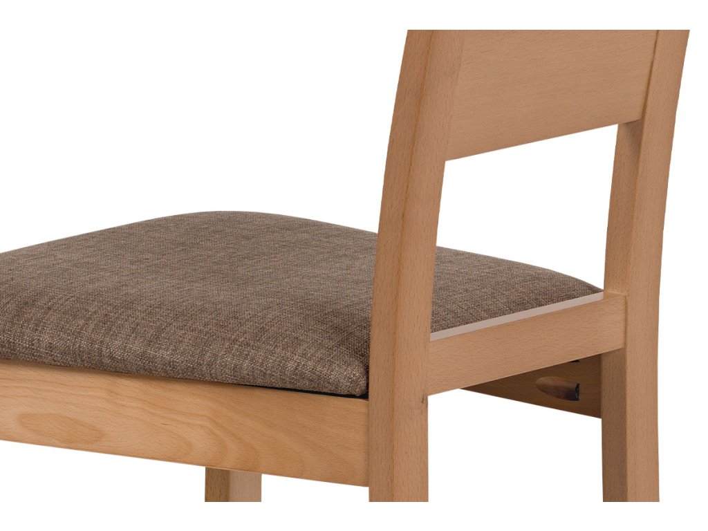 Elegantní jídelní židle vyrobená z masivního dřeva namořená do barvy buk, potah je v hnědé melírované látce (Golden Honey). Židle je ideálním doplňkem do kuchyně či jídelny, je ale také vhodná do kanceláří, čekáren atd. Nosnost 110 kg.Doplňkové parametry