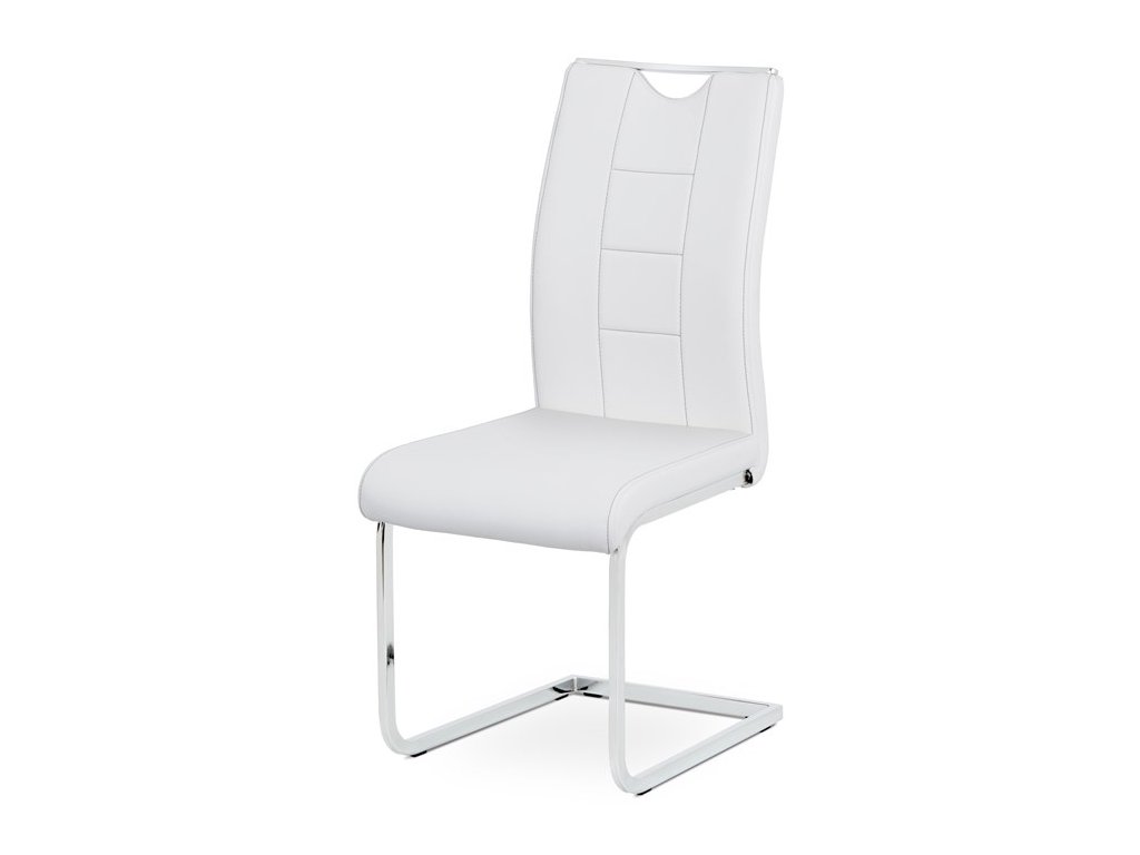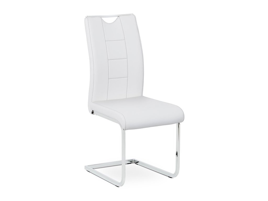 Atraktivní židle bude ozdobou každé jídelny či kuchyně. Provedení koženka v bílé barvě s dekorativním prošitím v kombinaci s pochromovaným madlem a podnoží. Praktické madlo zajistí snadnou manipulaci. Nosnost židle je do 110 kg.Doplňkové parametry