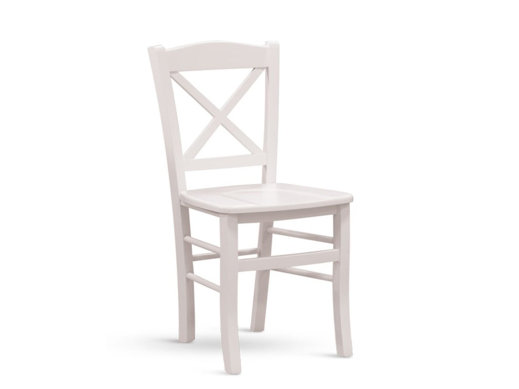Jídelní bílá židle, materiál masiv borovice, barevné provedení bílý lak, výška sedu 45 cm.