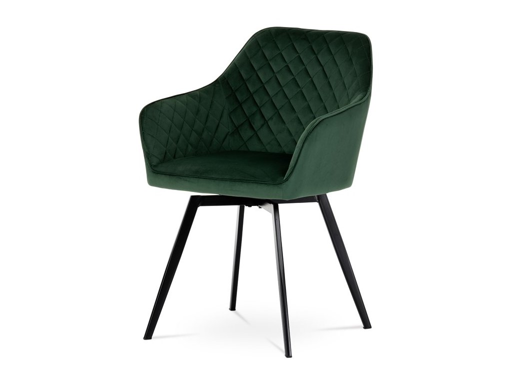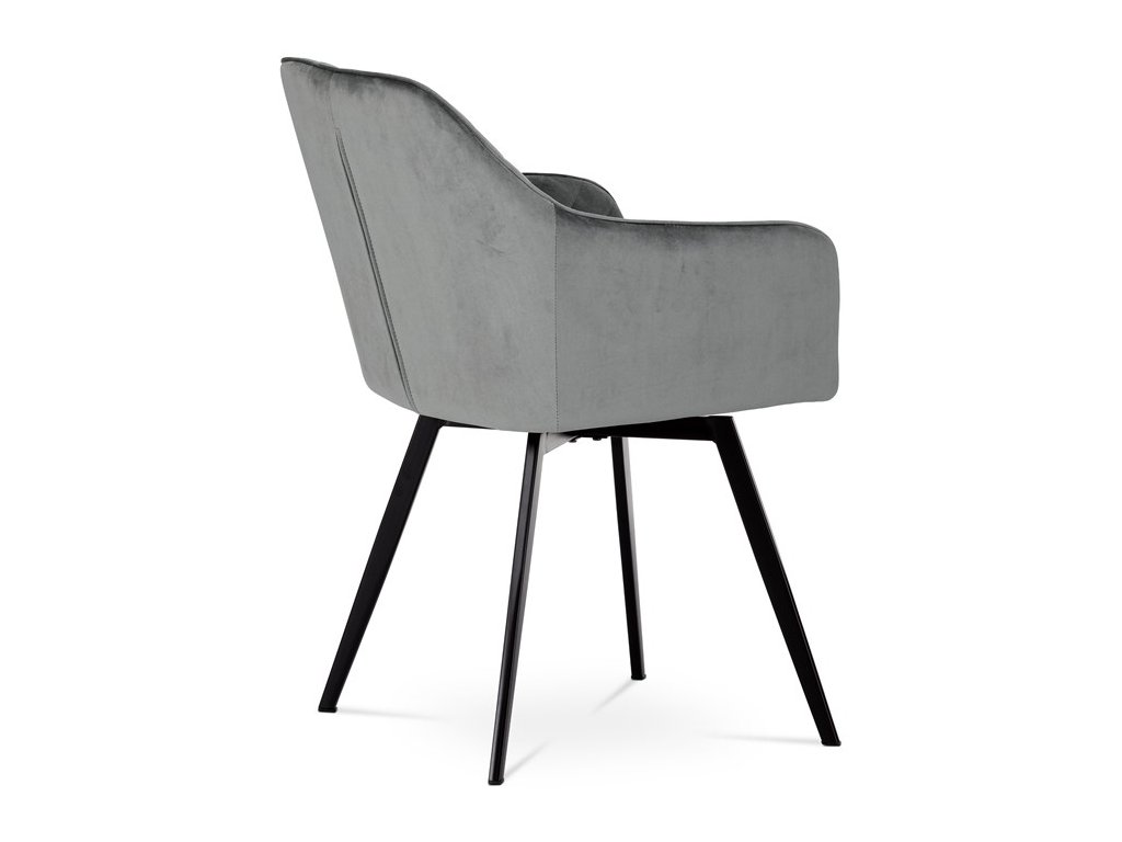 Díky svému dokonalému designu je tato židle v industriálním stylu nezaměnitelná a zároveň velmi pohodlná. Skořepina sedáku a opěradla má potah z kvalitní látky ve vesmírně černém matném sametu. Polstrování je z PU pěny. Velmi dekorativním prvkem je výrazné kosočtvercové prošití vnitřních ploch v barvě potahu a paspule po obvodu celé skořepiny. Vybraná látka se také velmi dobře čistí. Stabilitu židle zajišťují čtyři kónické kovové nohy obdélníkového průřezu s kvalitním práškovým nástřikem v černé matné barvě. Ukončené jsou černými plastovými kluzáky, zabraňující poškození tvrdých povrchů podlah. Tato provedení produkují z tohoto modelu židle skvělou volbu pro zařízení obývacích či jídelních, ale také zasedacích místností. Nosnost židle je 110 kg.Bonusem této židle je otočný a vratným mechanismus, který umožňuje otáčení o 90° doleva a o 90° doprava a zároveň vždy vrátí sedák do původní polohy. Díky němu žiidle zůstanou vždy srovnané u stolu.