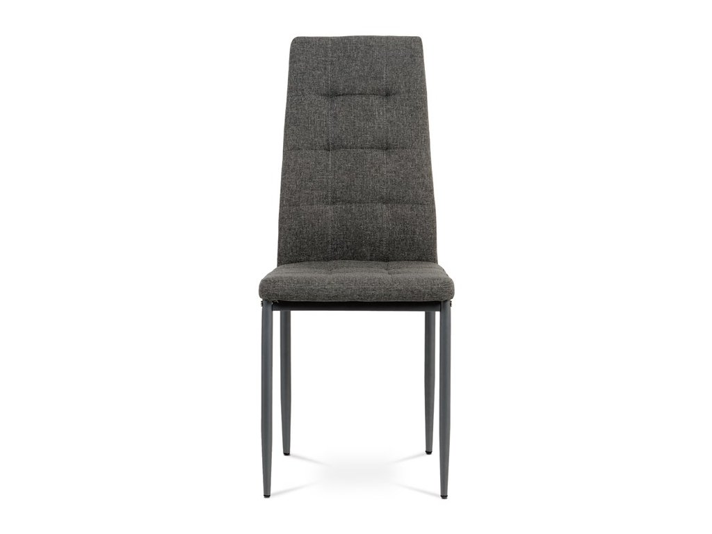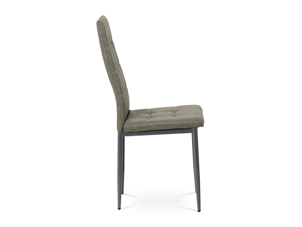 Jídelní židle v industriálním stylu a minimalistickém designu. Je potažena středně hrubou látkou v trendy odstínu dark cappuccino s výrazným čtvercovým prošitím s čalounickými vtahy sedáku i opěráku. Polstrování je z kvalitní PU pěny. Čtyřnohá podnož je kovová, s povrchovou úpravou cappuccino matnou práškovou barvou. Nohy jsou kruhového průřezu a kónické, na koncích jsou opatřeny černými plastovými kluzáky, které minimalizují nebezpečí poškození povrchu podlahy na minimum. Nosnost židle je až 110 kg.Tato židle najde platné využití v prostorách domácí jídelny či kuchyně.