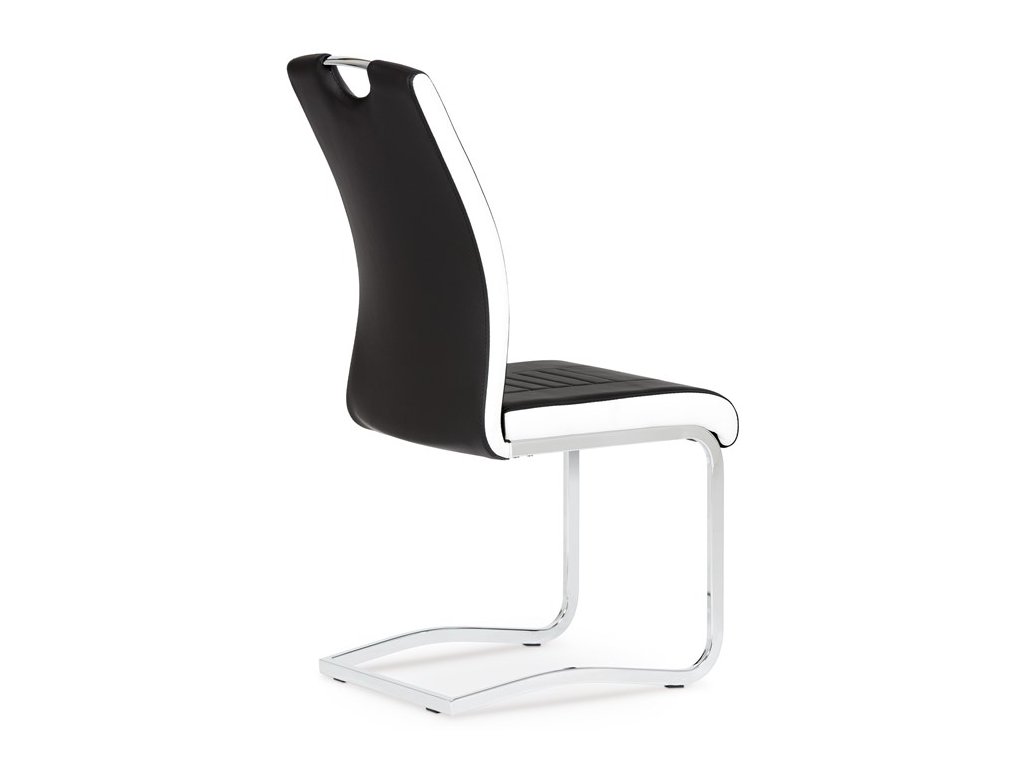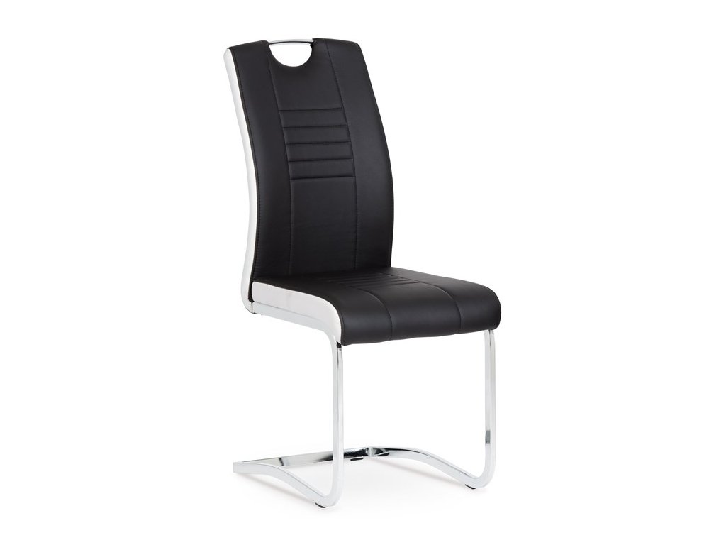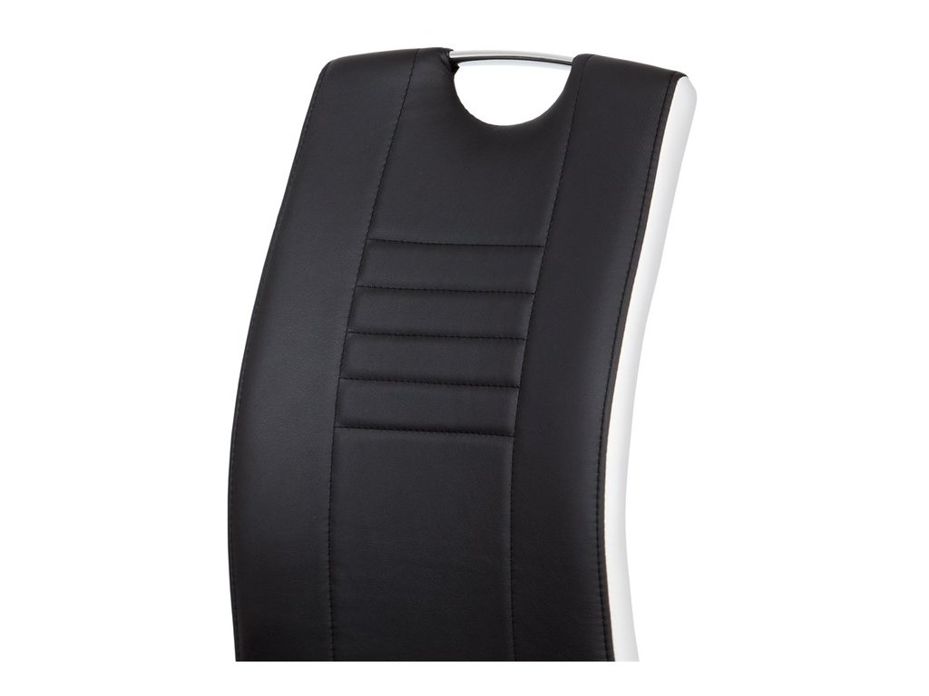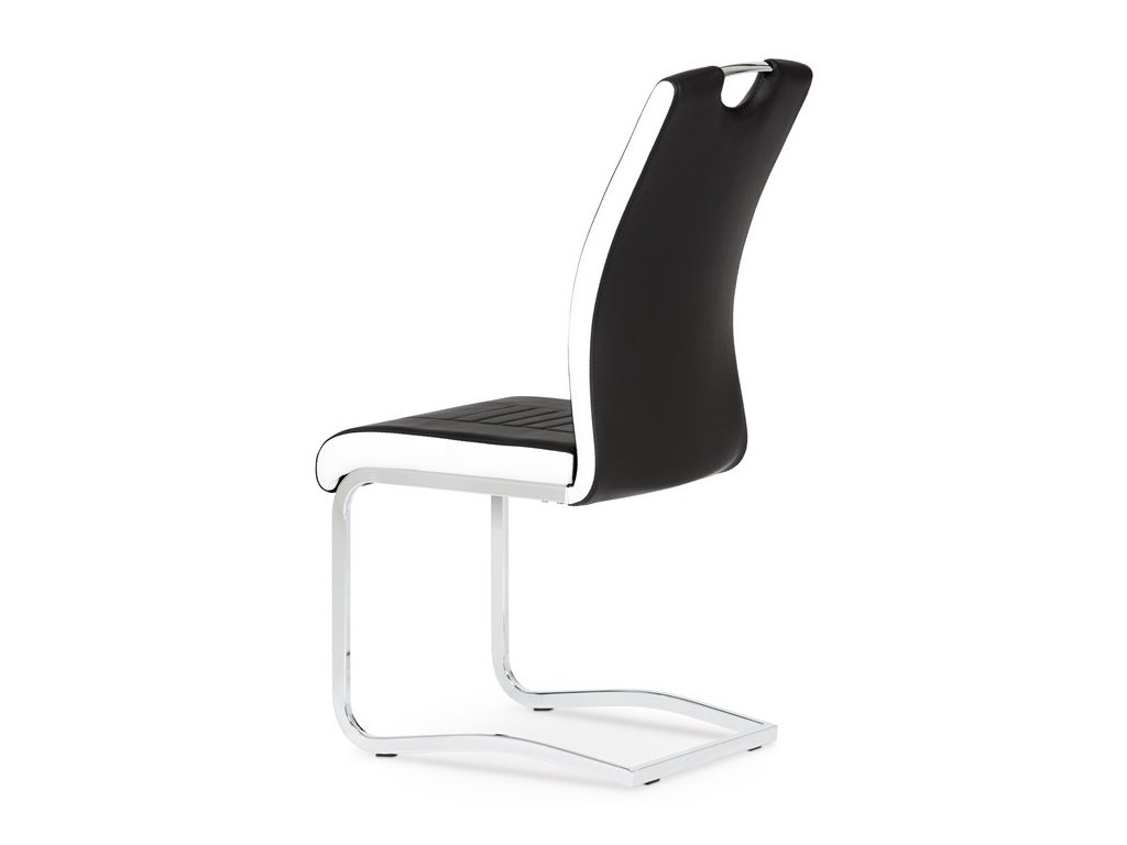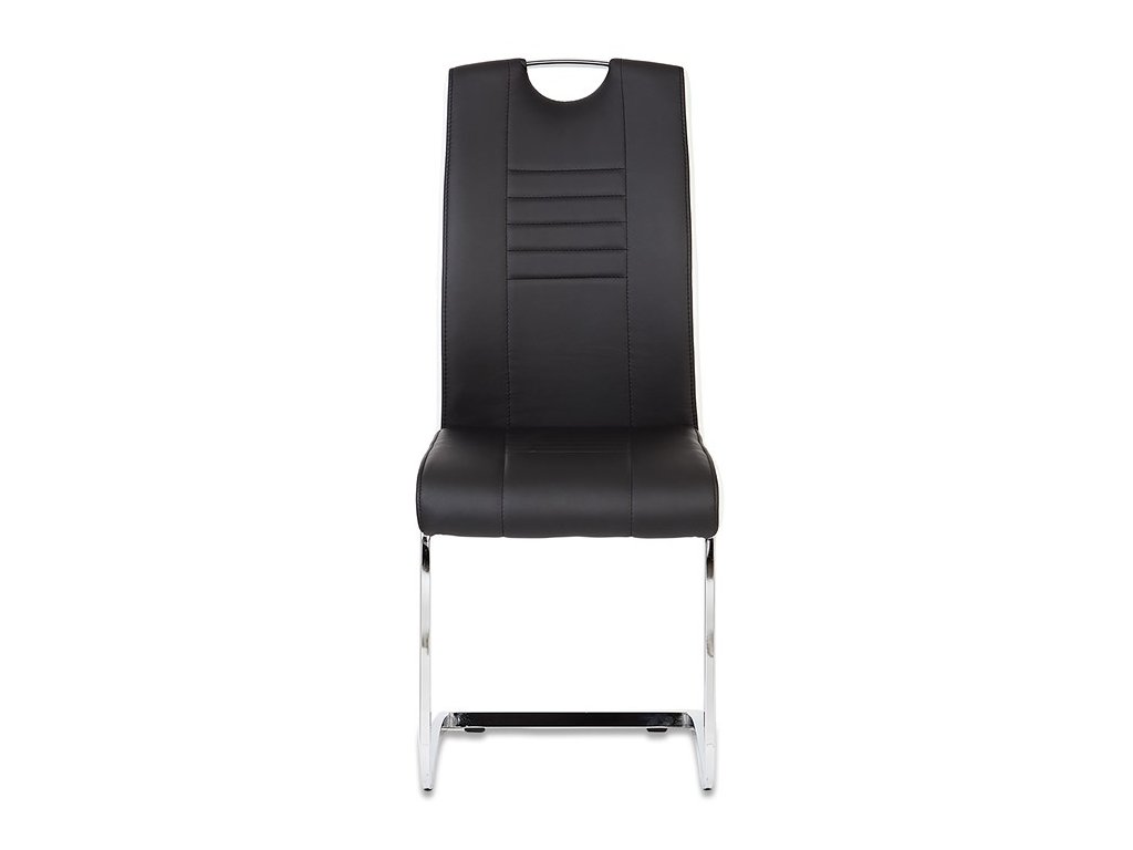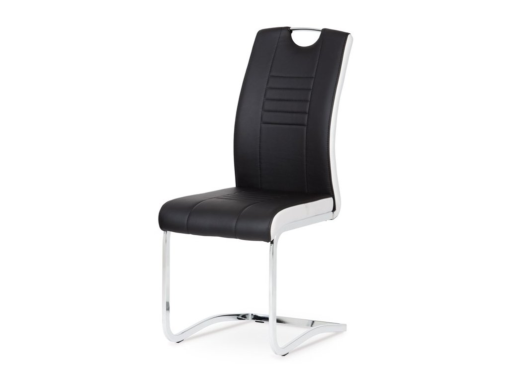 Moderní jídelní židle na pohupové chromové podnoži, čalouněná koženkou v černé barvě s bílými boky. Sedák s opěrákem jsou dekorativně prošité, chromové madlo zajistí snadnou manipulaci. Židle jsou velmi pohodlné a navíc stylové. Nosnost do 110 kg.Doplňkové parametry