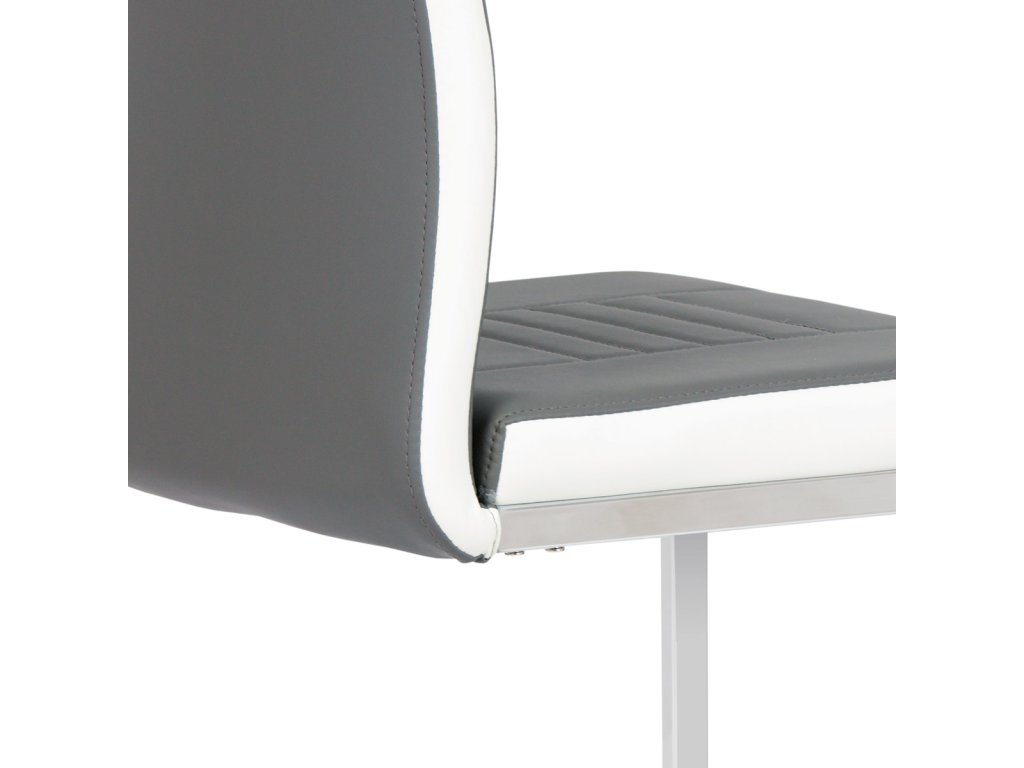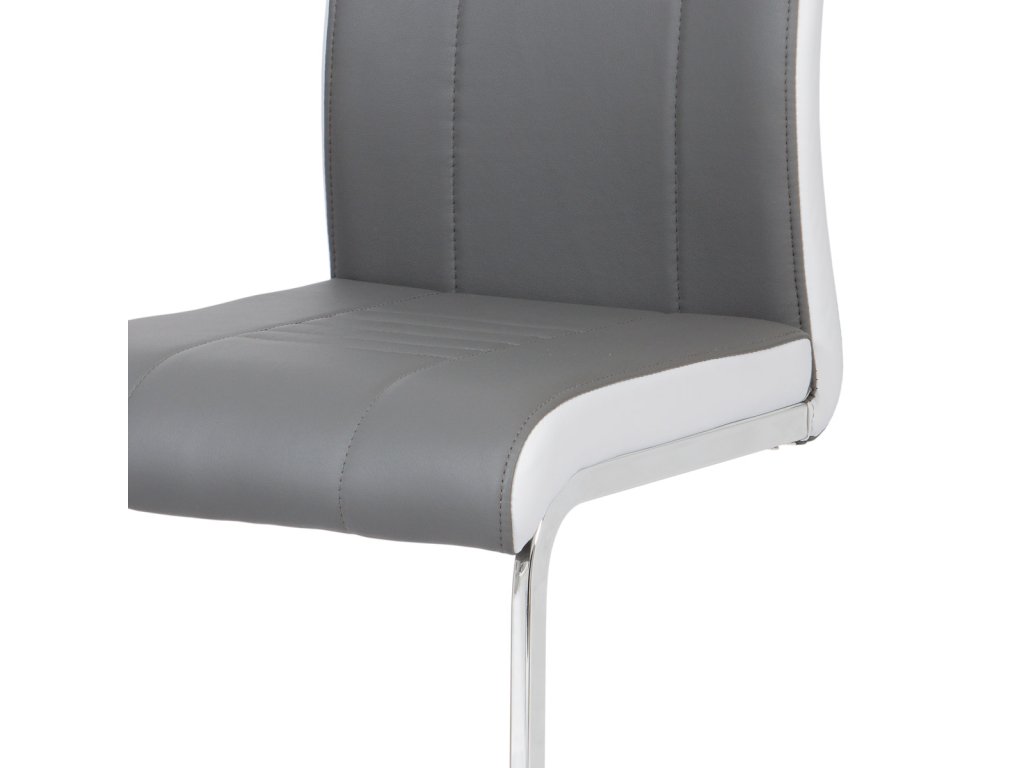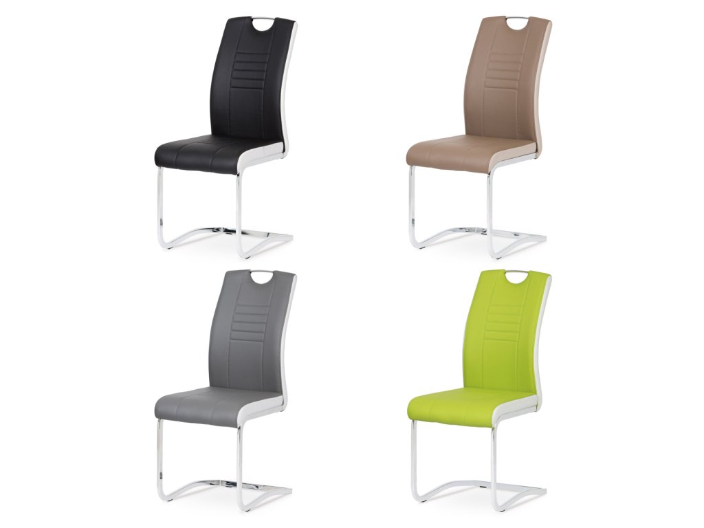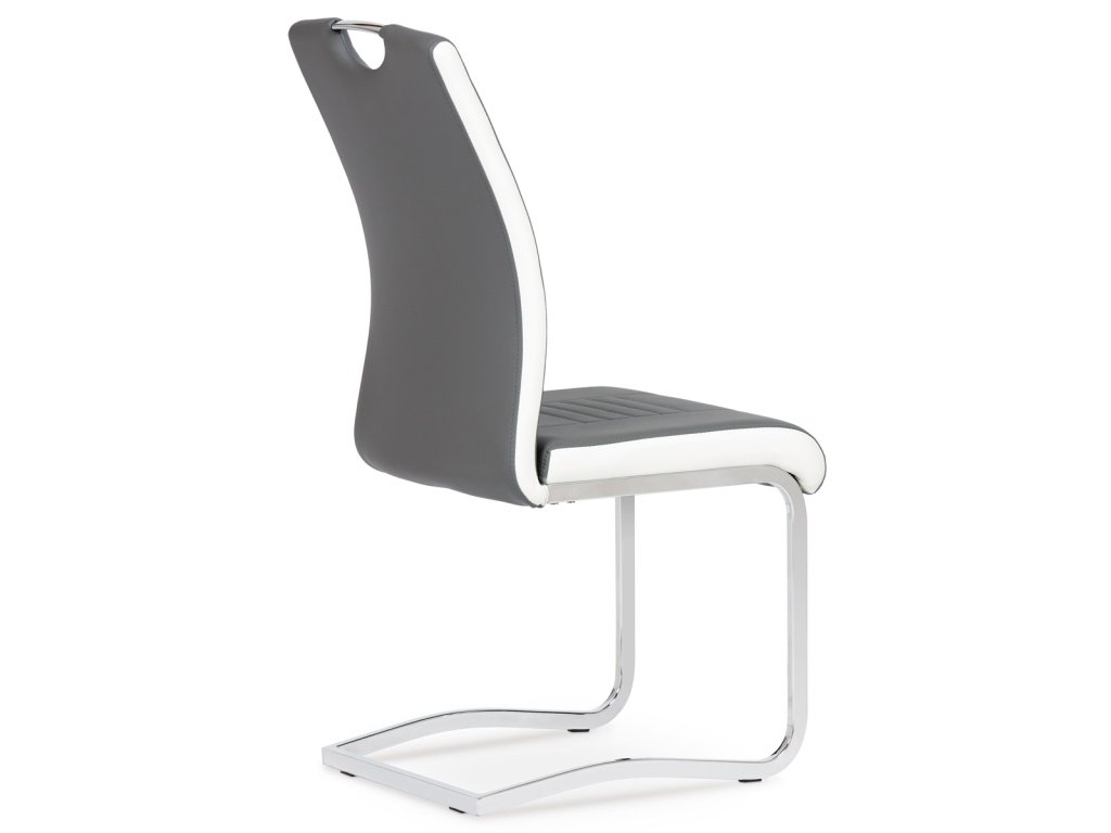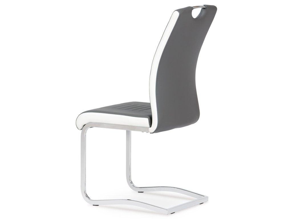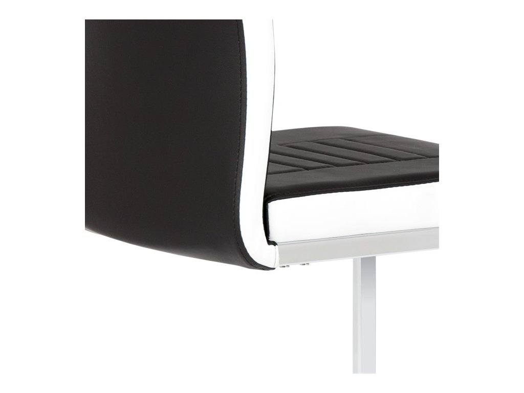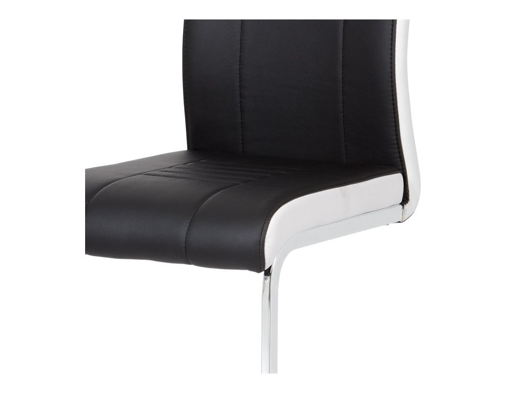 Moderní jídelní židle na pohupové chromové podnoži, čalouněná koženkou v černé barvě s bílými boky. Sedák s opěrákem jsou dekorativně prošité, chromové madlo zajistí snadnou manipulaci. Židle jsou velmi pohodlné a navíc stylové. Nosnost do 110 kg.Doplňkové parametry