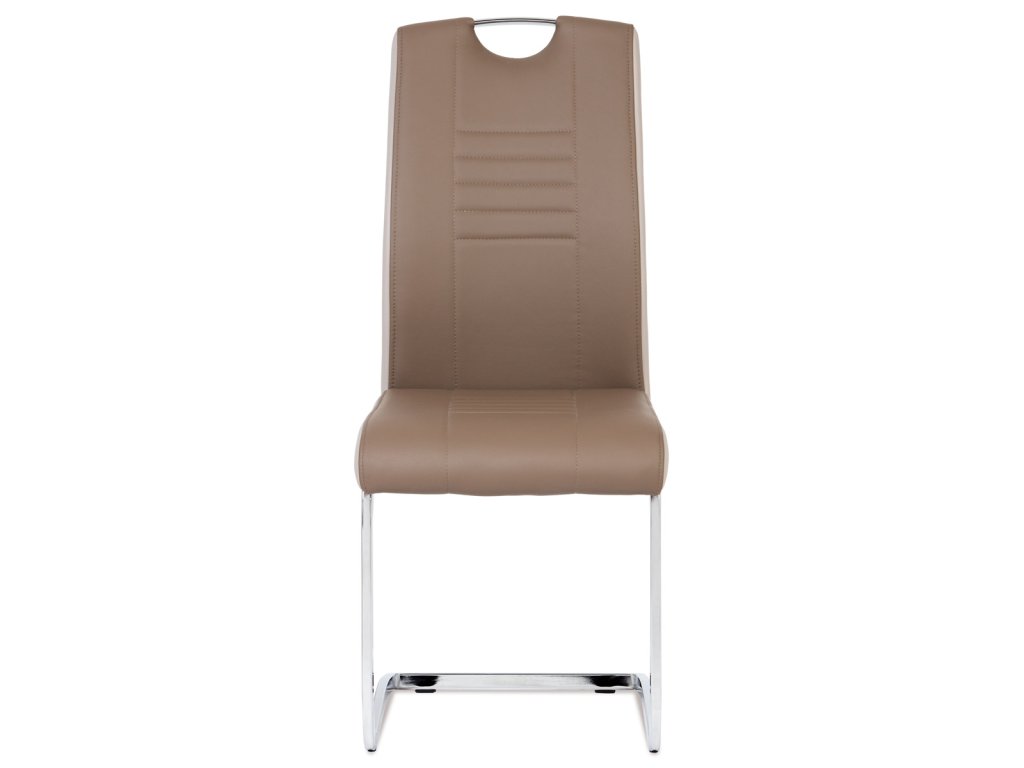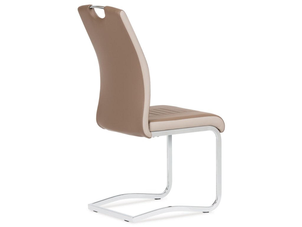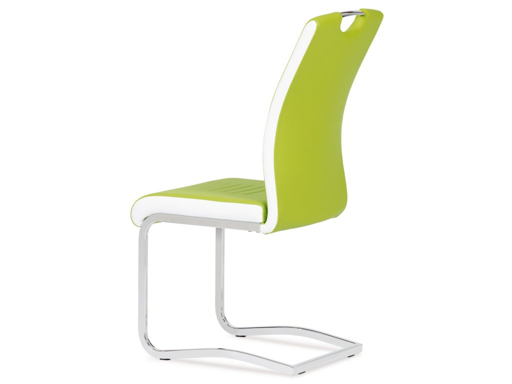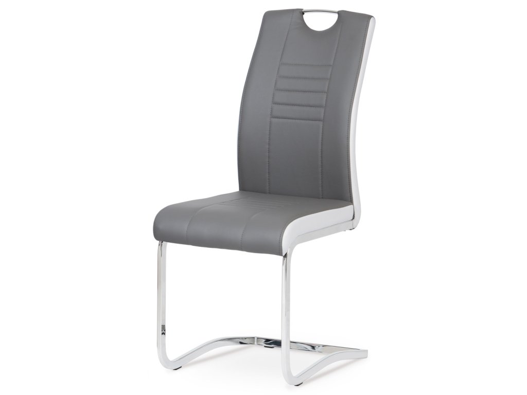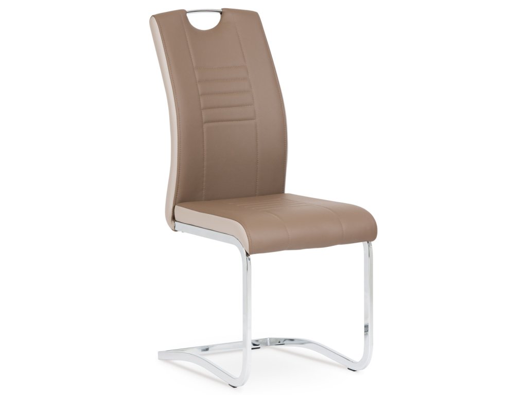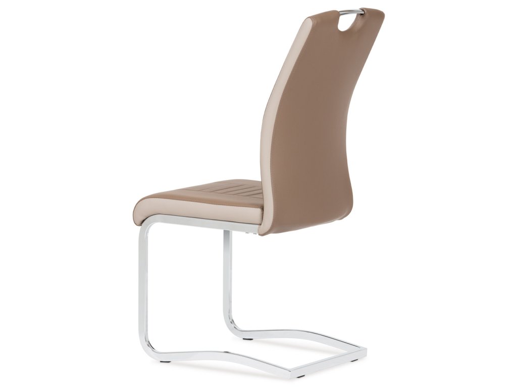 Moderní jídelní židle na pohupové chromové podnoži, čalouněná koženkou v černé barvě s bílými boky. Sedák s opěrákem jsou dekorativně prošité, chromové madlo zajistí snadnou manipulaci. Židle jsou velmi pohodlné a navíc stylové. Nosnost do 110 kg.Doplňkové parametry