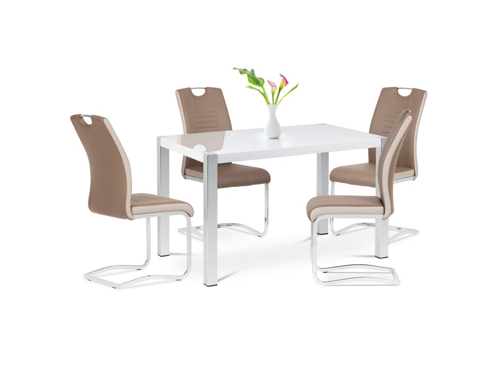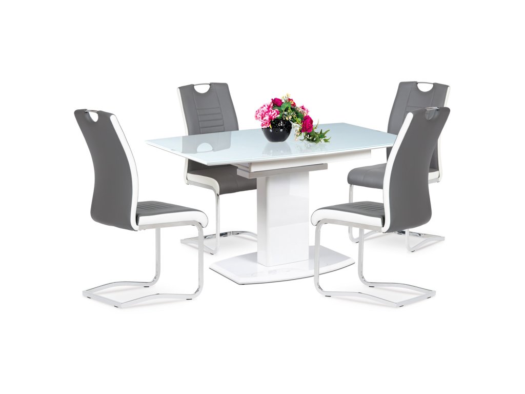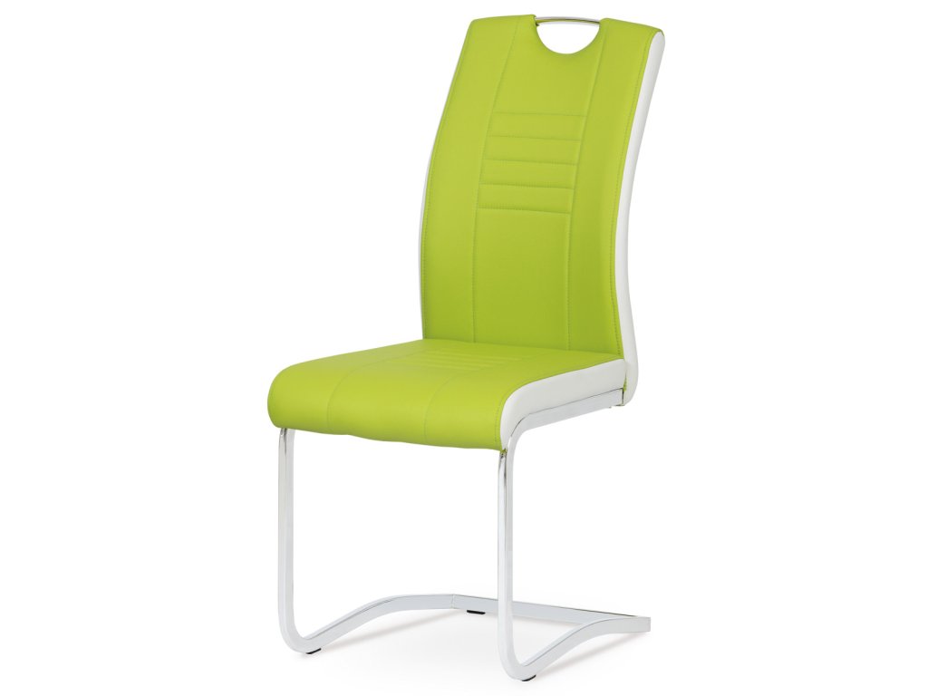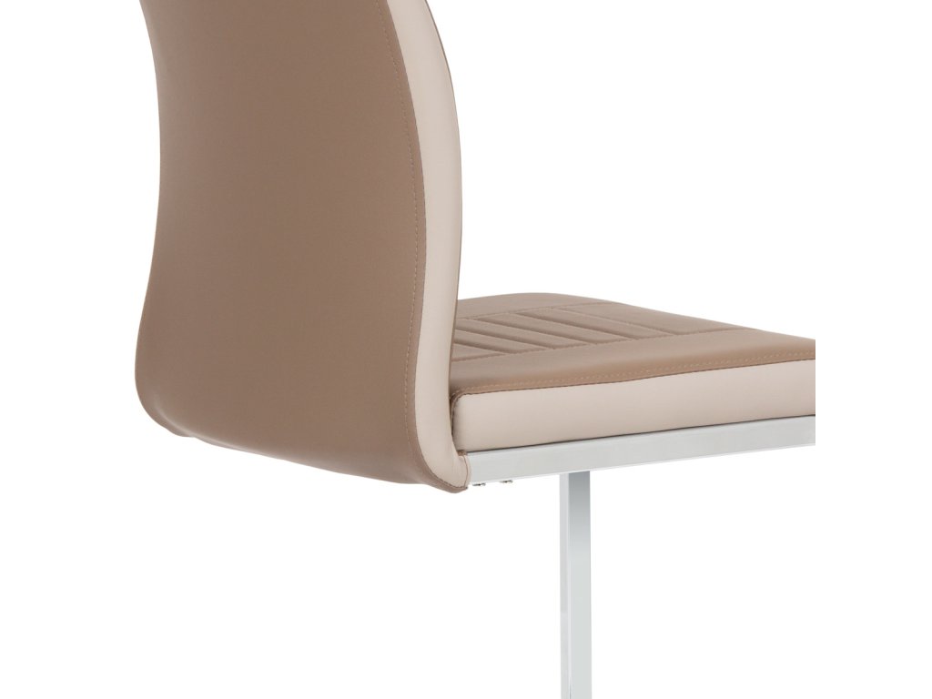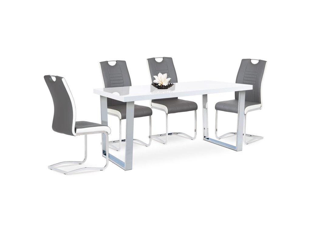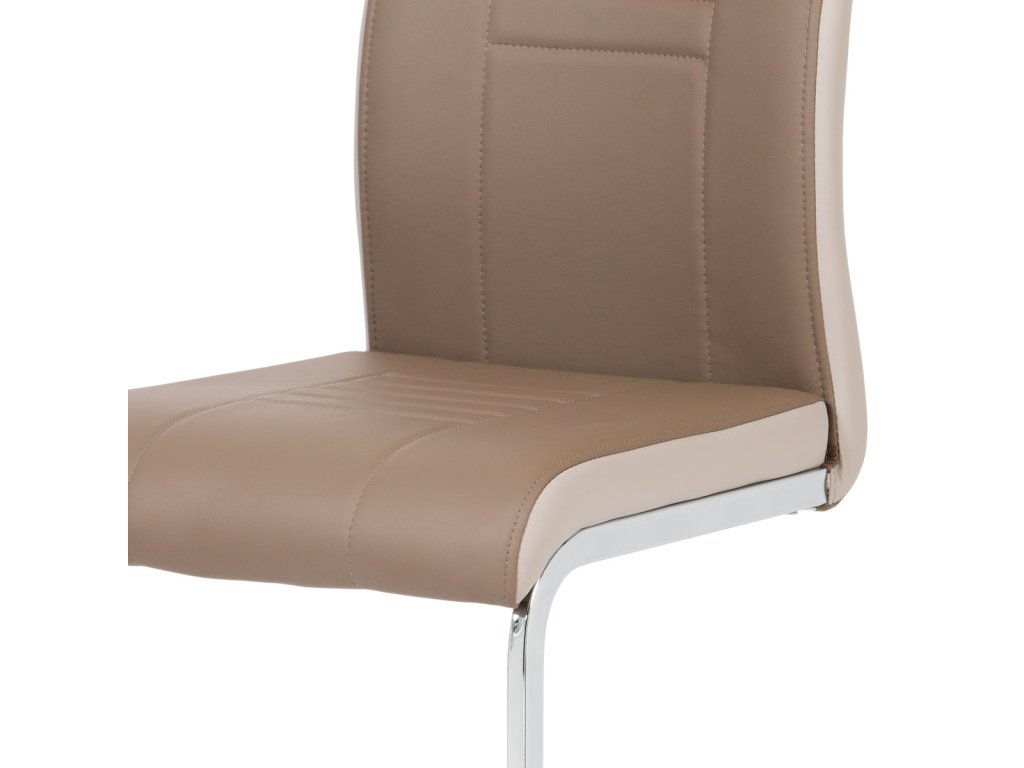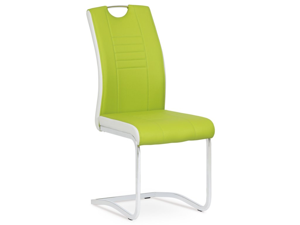 Moderní jídelní židle na pohupové chromové podnoži, čalouněná koženkou v černé barvě s bílými boky. Sedák s opěrákem jsou dekorativně prošité, chromové madlo zajistí snadnou manipulaci. Židle jsou velmi pohodlné a navíc stylové. Nosnost do 110 kg.Doplňkové parametry