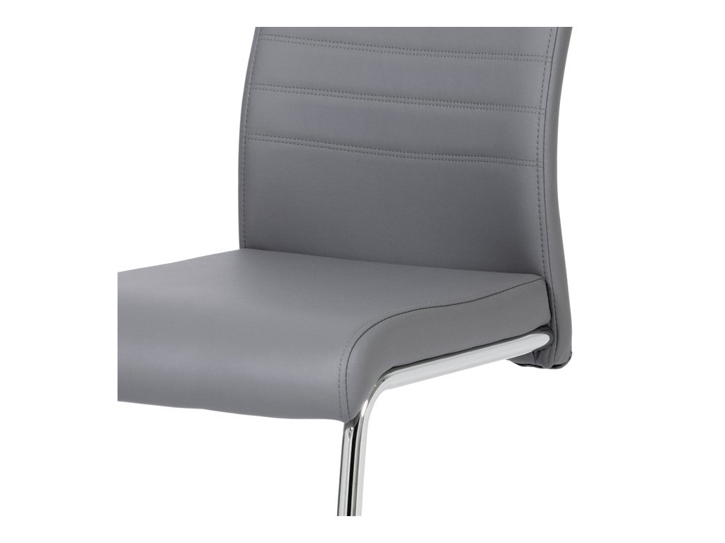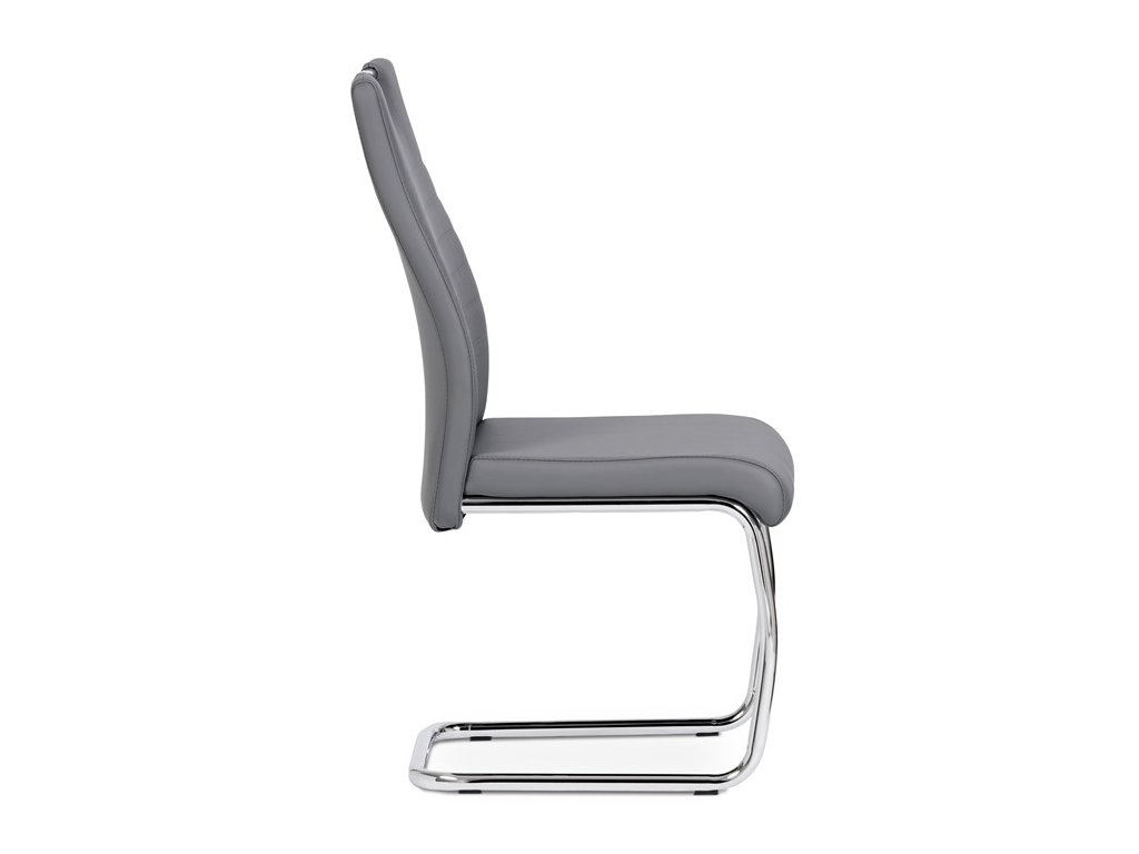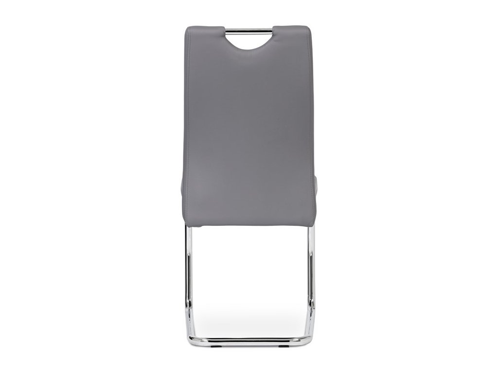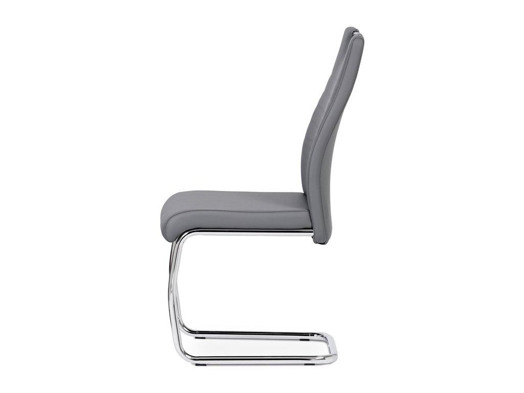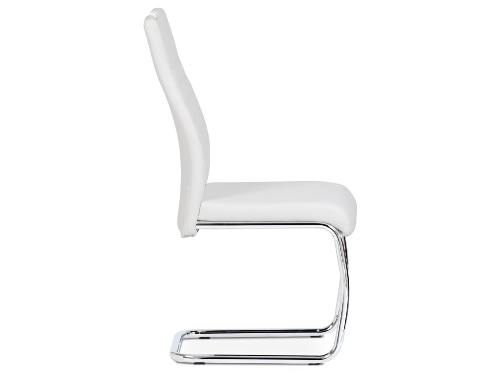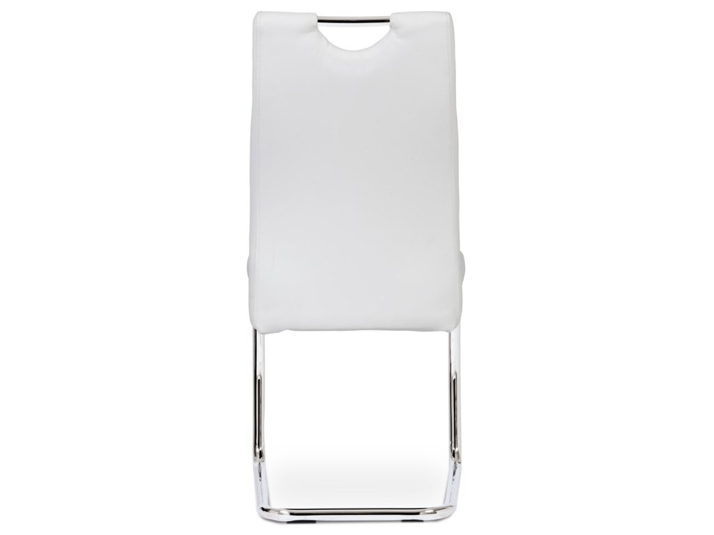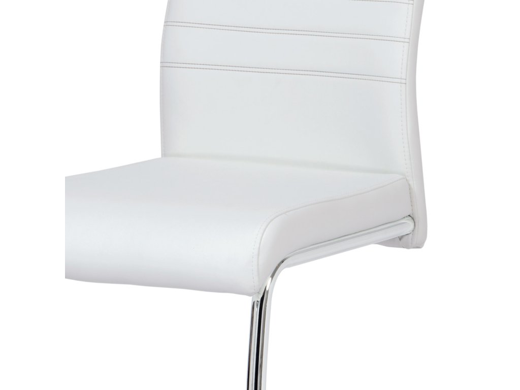 Moderní jídelní židle s dekorativně prošitým opěrákem je očalouněná koženkou v barvě cappuccino. Pochromované madlo a pohupová podnož jsou kruhového průřezu. Díky lehkému prohnutí podnože dochází k posunutí těžiště židle více dozadu, čímž je židle méně náchylná k překlopení dopředu. Lehké prohnutí též plní funkci estetickou, jelikož se jedná o design vskutku méně tradiční. Díky praktickému madlu je manipulace s židlí snadná, stejně jako údržba je bezproblémovou záležitostí. Nosnost do 110 kg.Doplňkové parametry