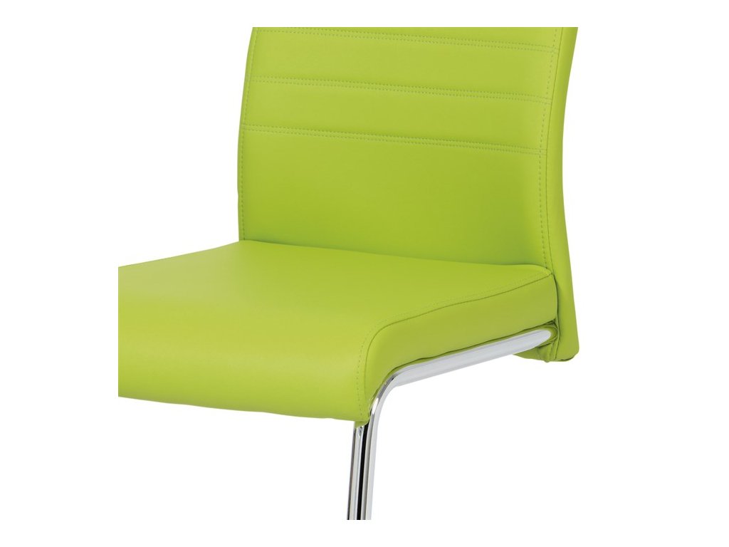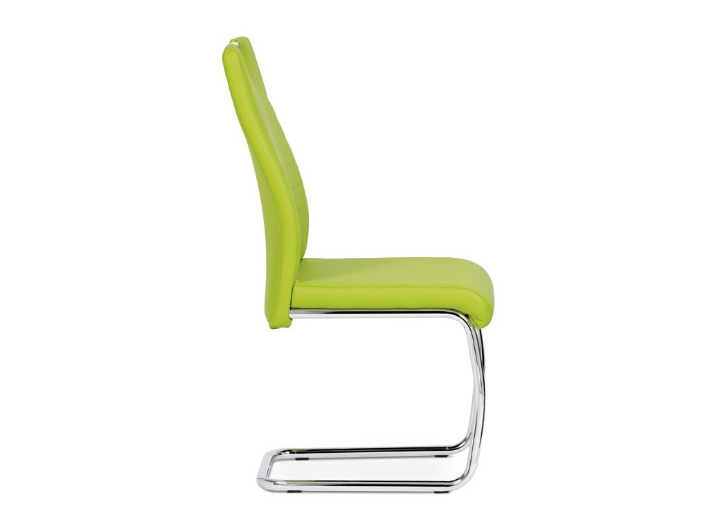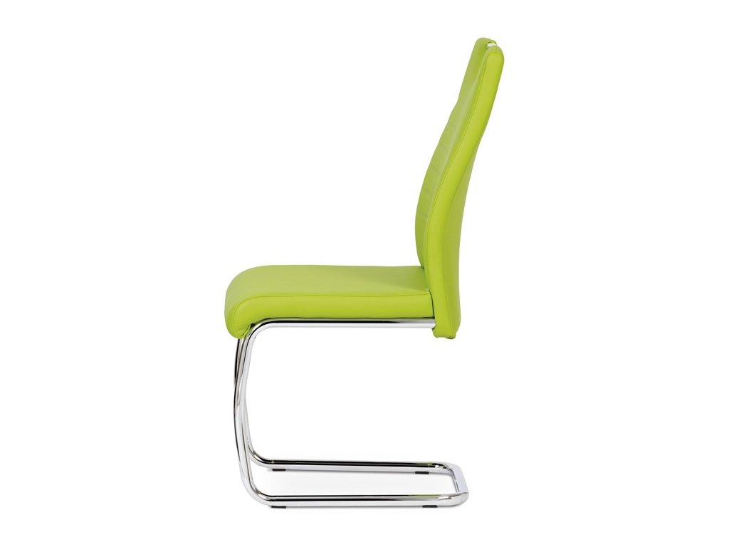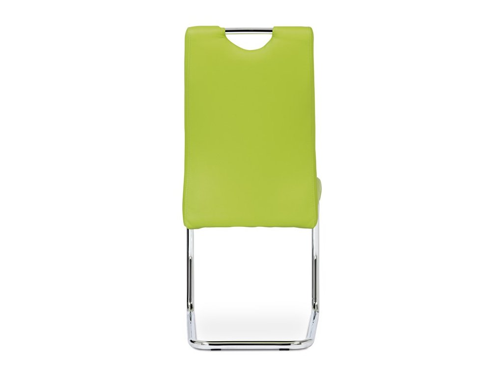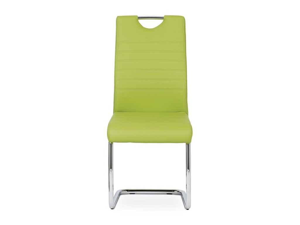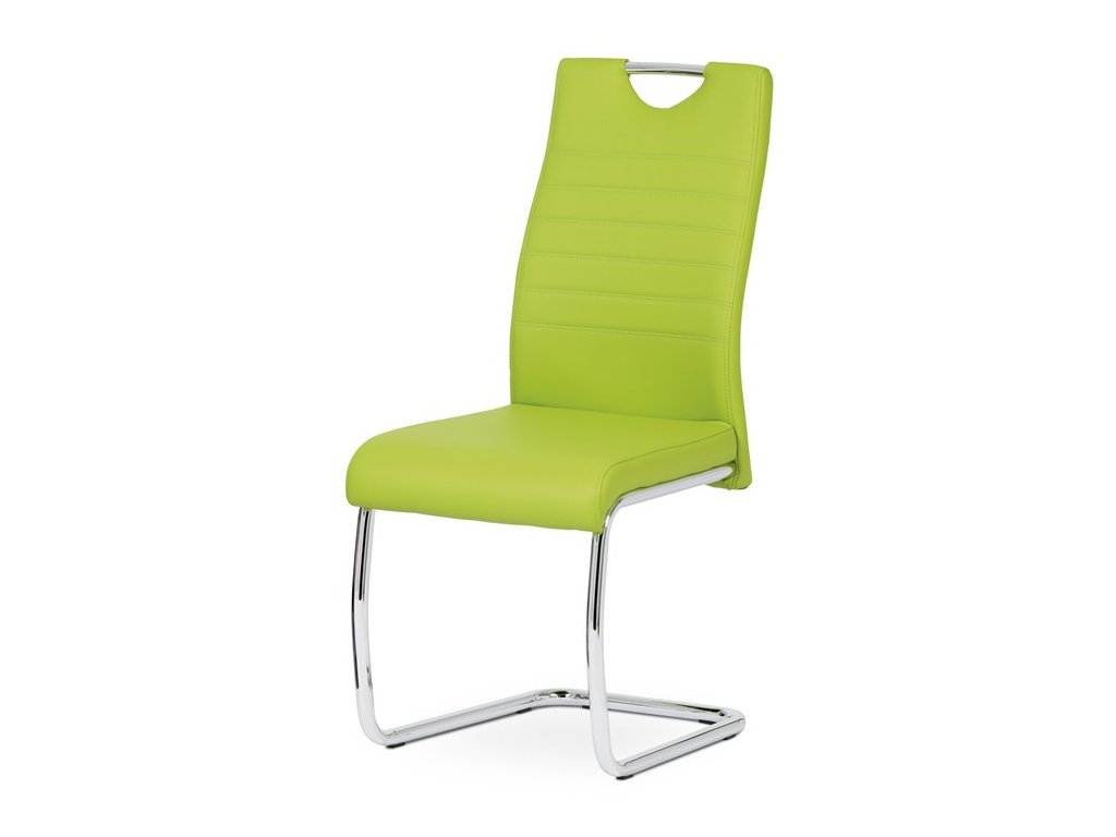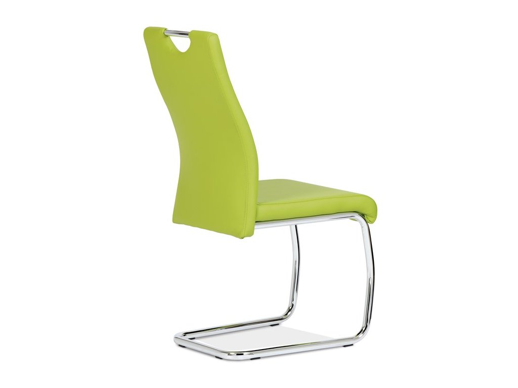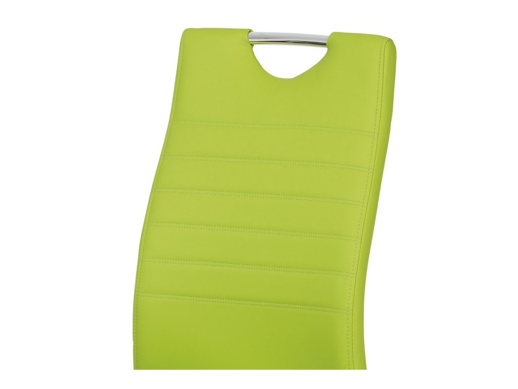 Moderní jídelní židle s dekorativně prošitým opěrákem je očalouněná koženkou v barvě cappuccino. Pochromované madlo a pohupová podnož jsou kruhového průřezu. Díky lehkému prohnutí podnože dochází k posunutí těžiště židle více dozadu, čímž je židle méně náchylná k překlopení dopředu. Lehké prohnutí též plní funkci estetickou, jelikož se jedná o design vskutku méně tradiční. Díky praktickému madlu je manipulace s židlí snadná, stejně jako údržba je bezproblémovou záležitostí. Nosnost do 110 kg.Doplňkové parametry