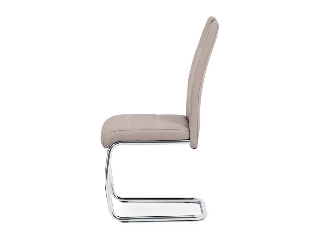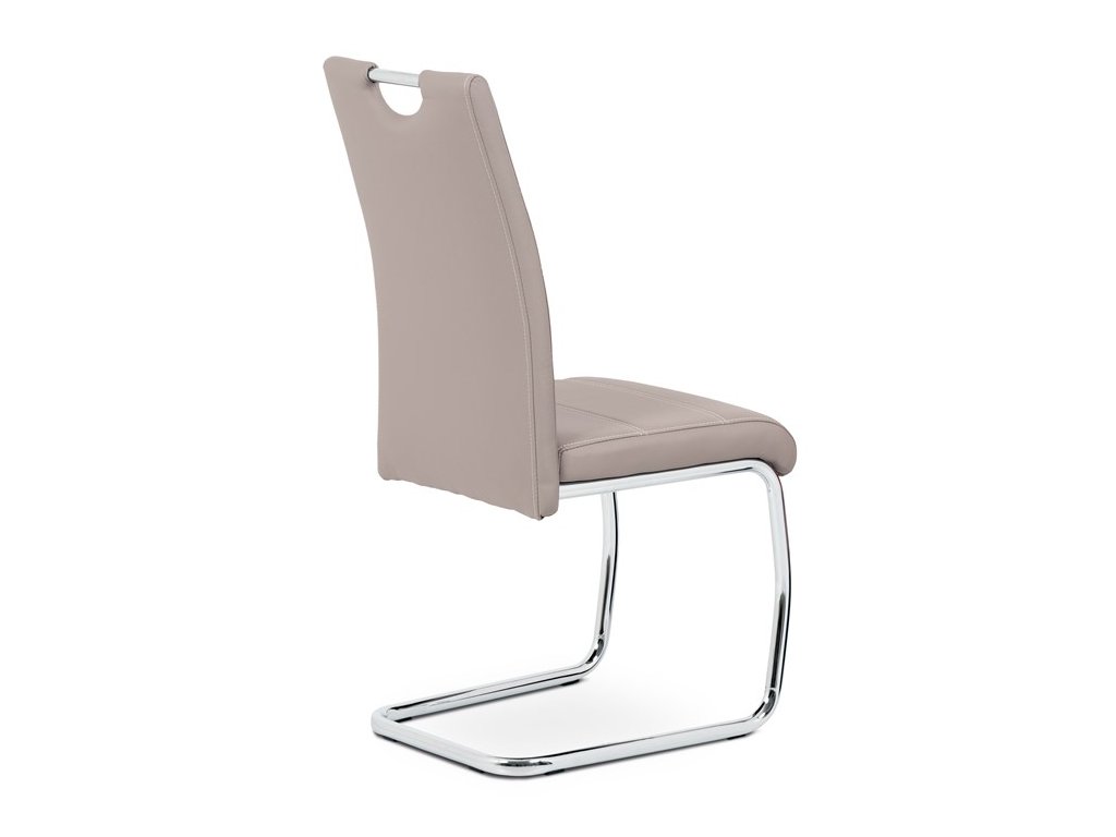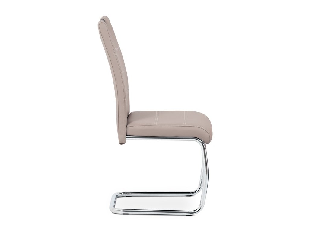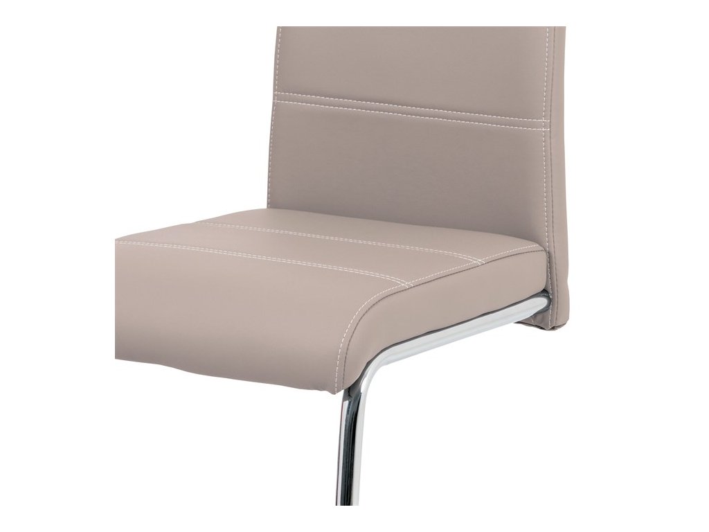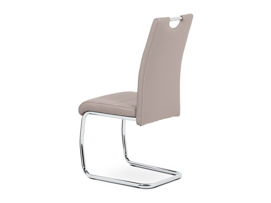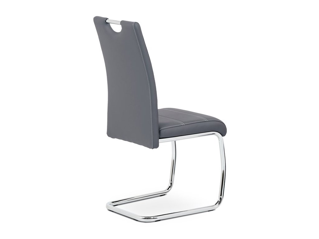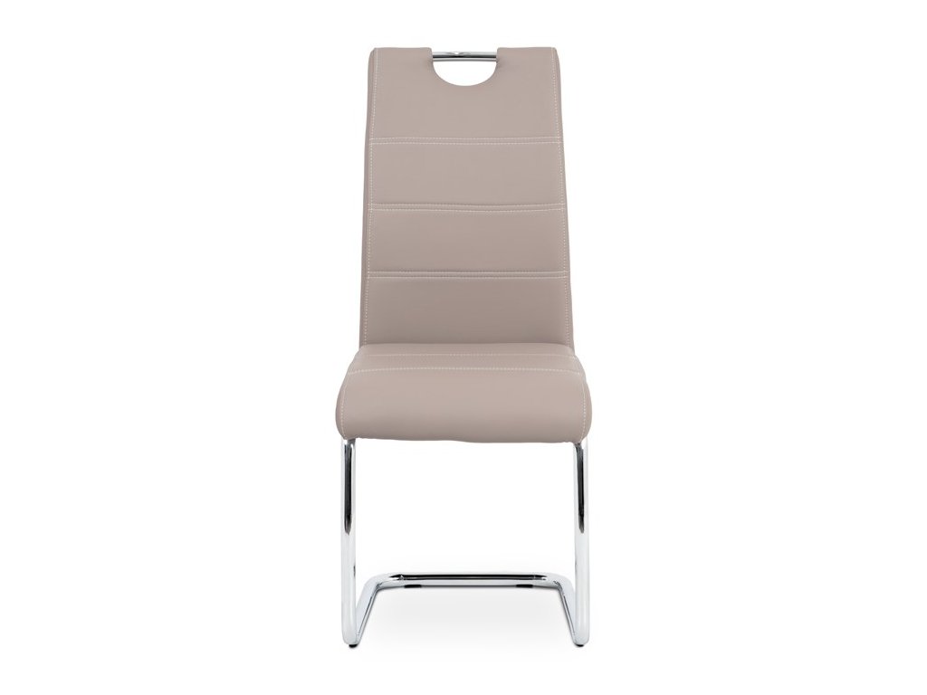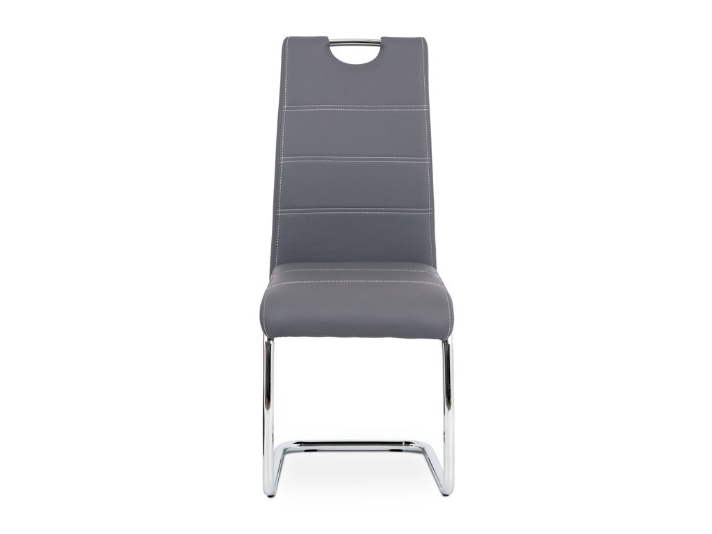 Moderní jídelní židle je čalouněná černou ekokůží s dekorativním bílým prošitím sedáku i opěráku. Moderní vzhled podtrhuje kovová pohupová podnož s chromovou úpravou. Podnož je navíc speciálně tvarovaná pro lepší stabilitu a bezpečí a je na šesti černých plastových kluzácích, které sníží riziko poškození Vaší podlahy. Pro snazší manipulaci má židle i madlo v horní části opěráku, které je kovové a též s chromovou úpravou. Nosnost židle je až 110 kg.Doplňkové parametry