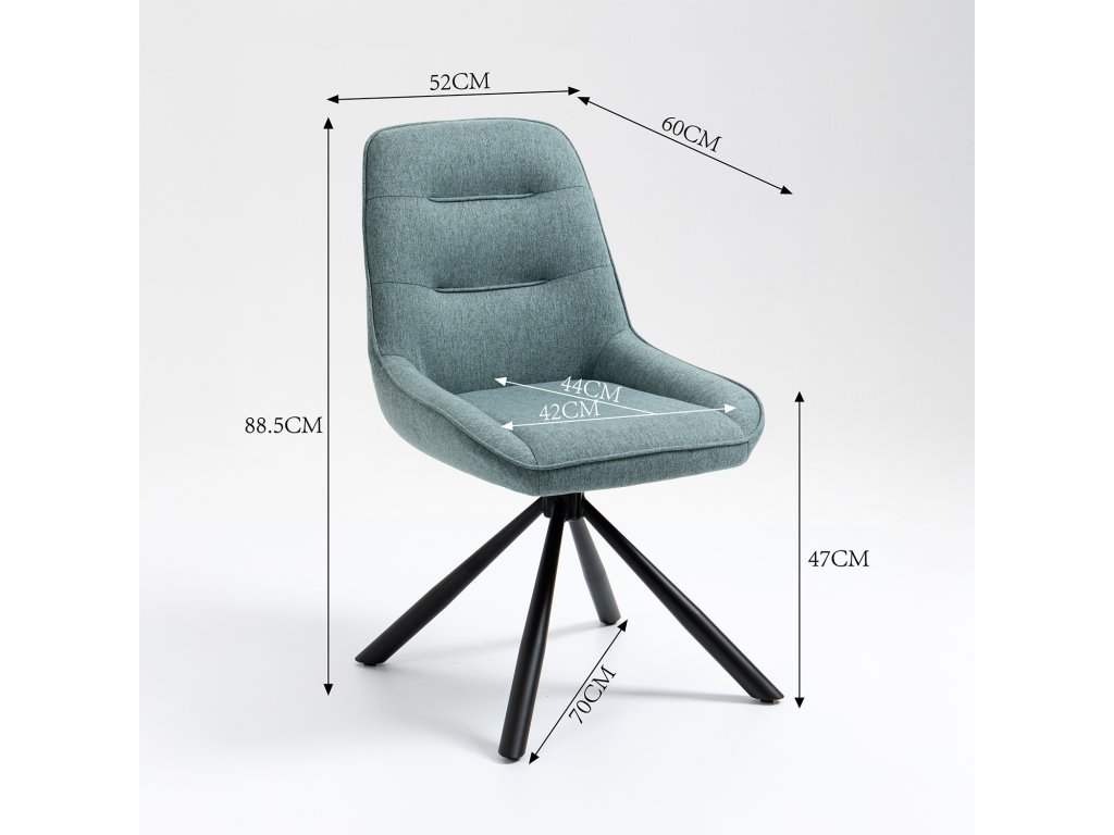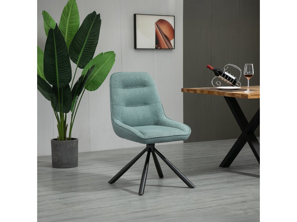 Stylová jídelní židle se světle modrým textilním potahem a černou kovovou konstrukcí je perfektní volbou pro moderní domácnosti i komerční prostory. Funkce otočení o 180° přináší maximální pohodlí a praktičnost při stolování nebo při práci.Ergonomický design a kvalitní materiály zaručují pohodlné sezení i dlouhou životnost. Díky výšce sedu 47 cm a nosnosti do 120 kg je židle vhodná pro každodenní použití.