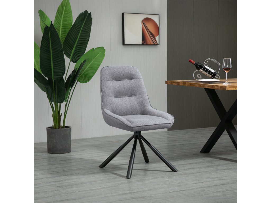 Tato jídelní židle kombinuje šedý textilní potah s černou kovovou konstrukcí, čímž nabízí stylový a moderní vzhled pro každý interiér. Otočná funkce o 180° přidává na praktičnosti a komfortu, což oceníte nejen při stolování, ale také při práci nebo posezení s přáteli.Díky pevnému provedení a doporučené nosnosti 120 kg je židle vhodná pro každodenní použití. Výška sedu 47 cm zajišťuje pohodlné sezení pro většinu uživatelů.