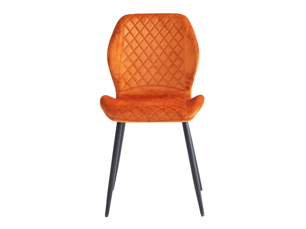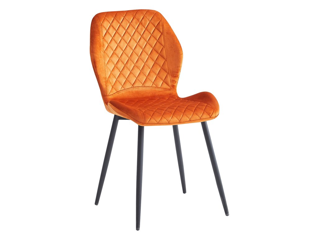 Moderní jídelní židle s textilním potahem v zářivé oranžové barvě přinese do vašeho interiéru styl a pohodlí. Černá kovová konstrukce je navržena pro stabilitu a dlouhou životnost.S výškou sedu 50 cm je tato židle vhodná pro jídelní stoly standardní výšky i pro multifunkční použití v domácnosti či kanceláři. Doporučená nosnost 120 kg zajišťuje bezpečné a pohodlné sezení.