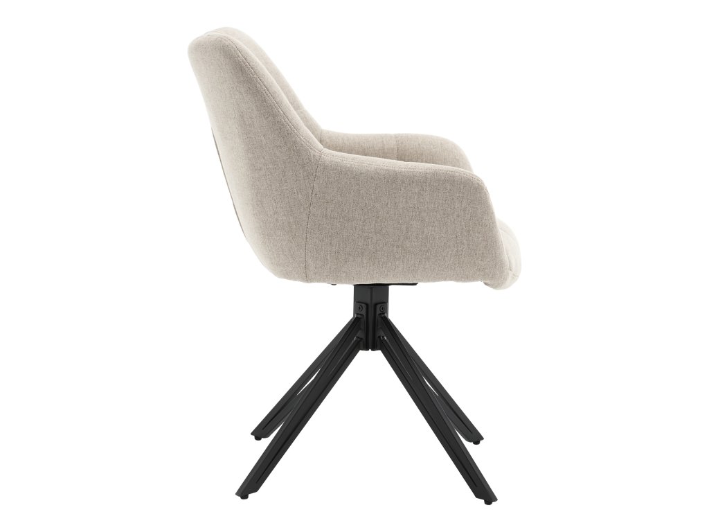 Moderní jídelní židle v elegantním provedení spojuje styl a funkčnost. Textilní potah v béžové barvě dodává židli jemný a útulný vzhled, zatímco černá kovová konstrukce zajišťuje stabilitu a odolnost. Židle je otočná o 180 stupňů, což zvyšuje její pohodlí a praktičnost při používání. Výška sedu 50 cm je ideální pro standardní jídelní stoly. S doporučenou nosností do 120 kg je židle spolehlivá a bezpečná. Skvělá volba pro moderní i klasické jídelní prostory.Doplňkové parametry