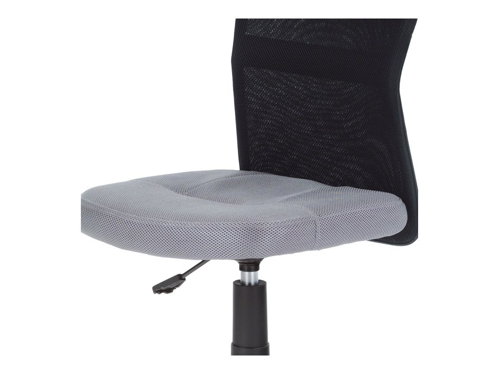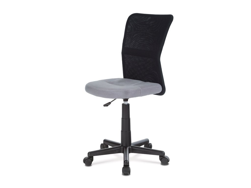 Dětská kancelářská židle čalouněná látkou MESH ve stylové kombinaci šedé a černé barvy. Díky plynovému pístu je židle výškově nastavitelná. Židle má také plastový kříž s plastovými kolečky vhodnými na koberce. Nosnost 60 kg.Doplňkové parametry