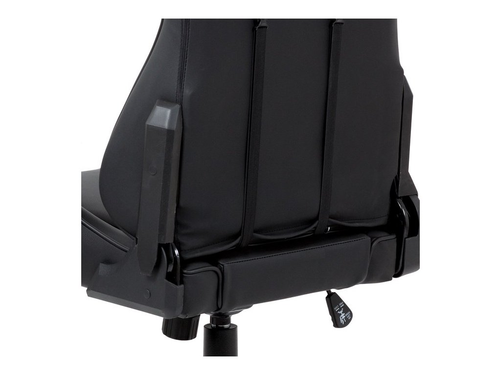 Kancelářská židle v provedení černá ekokůže s modrými detaily v dekoru "CARBON", univerzální (pogumovaná) kolečka, plastový kříž, výškově nastavitelné područky, polohovatelný opěrák až do polohy 180°, houpací mechanismus s možností nastavení tuhosti dle váhy uživatele. Součástí židle jsou 2 odnímatelné polštářky.Doplňkové parametry