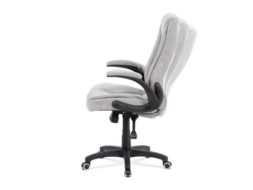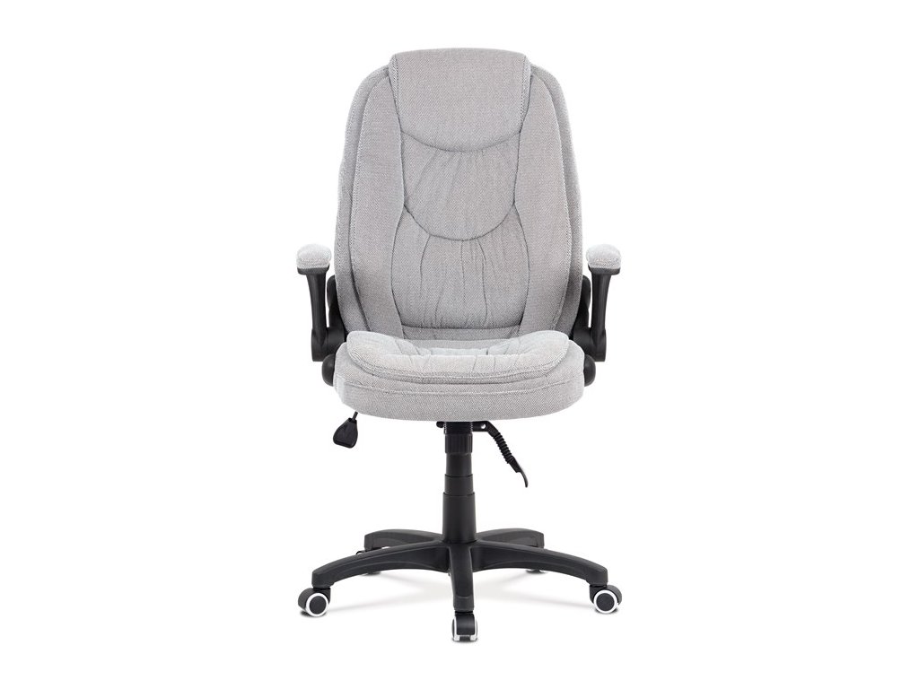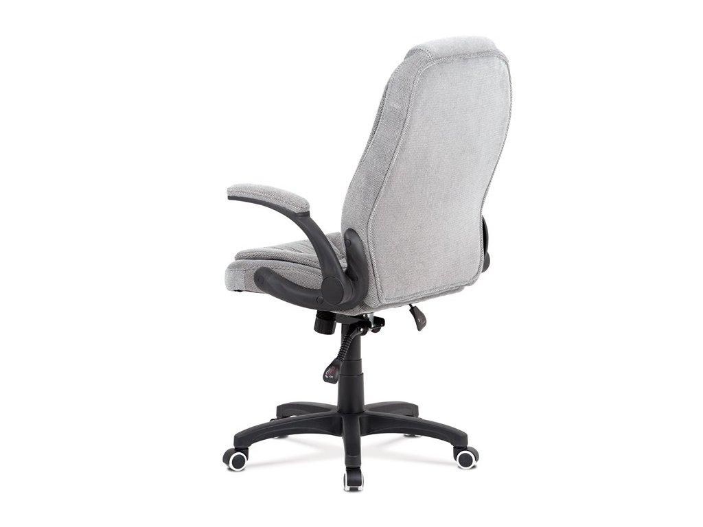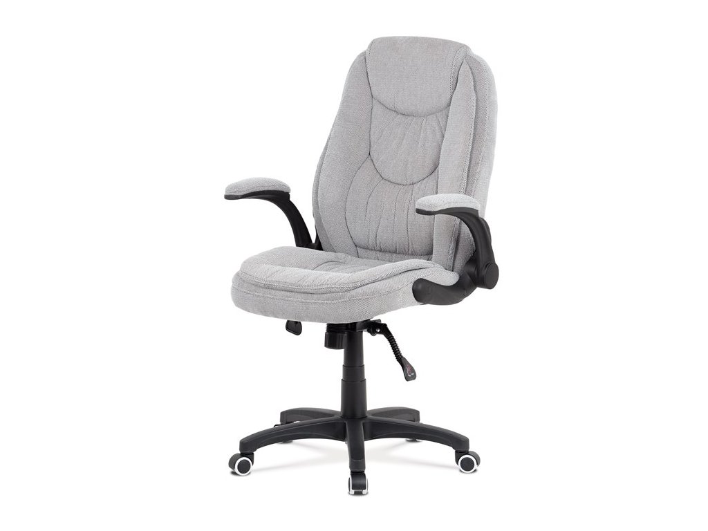 Moderní kancelářská židle potažená pololesklou šedostříbrnou látkou vzor pepito. Díky ultra pohodlnému sedáku a opěráku s výjimečným polstrováním, které jsou stylově tvarované, s elegantním prošitím a se super měkkým podhlavníkem se budete cítit jako v business class nejlepší letecké společnosti. Ruce si můžete pohodlně opřít o odklápěcí plastové područky stříbrné barvy s polstrováním potaženým extra jemnou látkou. Židle má také i snadno omyvatelný, tvrzený, plastový kříž stříbrné barvy s černými protiskluzovými prvky a plastovými kolečky vhodnými na tvrdé typy podlah (dlažba, parkety, plovoucí podlahy apod.). Židle je výškově nastavitelná, se synchronním mechanismem a předním šroubem upravujícím tuhost pohupu a její nosnost je až 120 kg.Látku čistit výhradně šamponováním běžnými čistícími prostředky za použití měkkého materiálu (houbička, hadřík). Nečistit hrubými materiály (kartáč, apod.). Nikdy nepoužívat chemická rozpouštědla. Látku nevystavujte přímému slunečnímu záření. Veškeré nečistoty je třeba odstraňovat ihned po ušpinění. Pozdním čištěním se úspěšnost zákroku výrazně snižuje. Látku nevystavujte přímému slunečnímu záření.