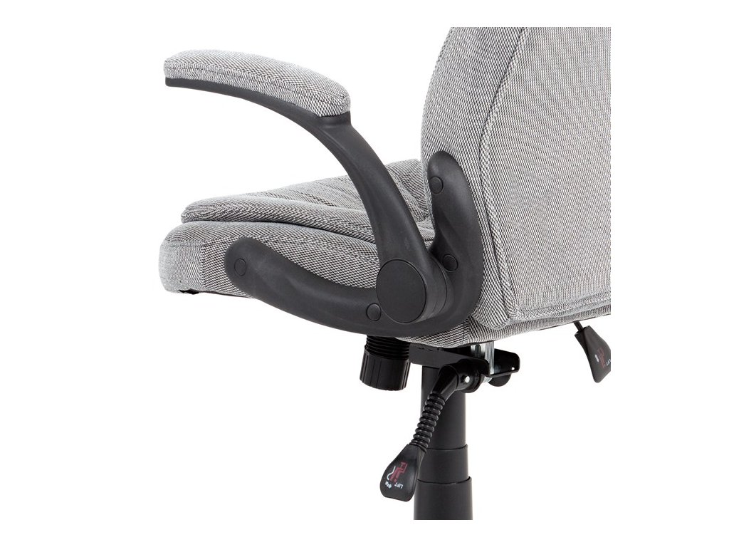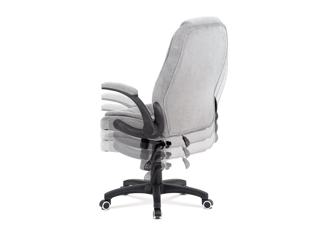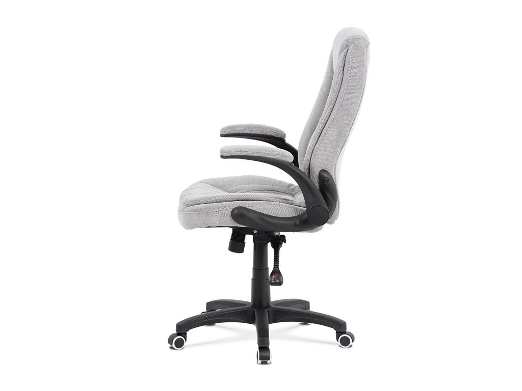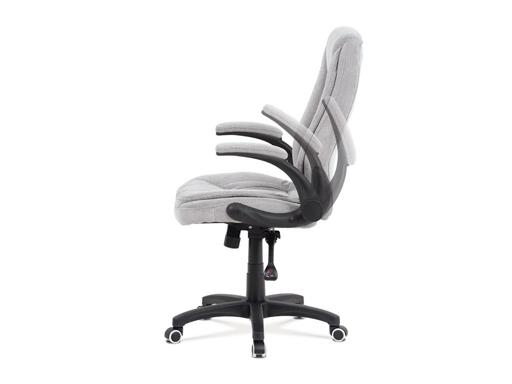 Moderní kancelářská židle potažená pololesklou šedostříbrnou látkou vzor pepito. Díky ultra pohodlnému sedáku a opěráku s výjimečným polstrováním, které jsou stylově tvarované, s elegantním prošitím a se super měkkým podhlavníkem se budete cítit jako v business class nejlepší letecké společnosti. Ruce si můžete pohodlně opřít o odklápěcí plastové područky stříbrné barvy s polstrováním potaženým extra jemnou látkou. Židle má také i snadno omyvatelný, tvrzený, plastový kříž stříbrné barvy s černými protiskluzovými prvky a plastovými kolečky vhodnými na tvrdé typy podlah (dlažba, parkety, plovoucí podlahy apod.). Židle je výškově nastavitelná, se synchronním mechanismem a předním šroubem upravujícím tuhost pohupu a její nosnost je až 120 kg.Látku čistit výhradně šamponováním běžnými čistícími prostředky za použití měkkého materiálu (houbička, hadřík). Nečistit hrubými materiály (kartáč, apod.). Nikdy nepoužívat chemická rozpouštědla. Látku nevystavujte přímému slunečnímu záření. Veškeré nečistoty je třeba odstraňovat ihned po ušpinění. Pozdním čištěním se úspěšnost zákroku výrazně snižuje. Látku nevystavujte přímému slunečnímu záření.
