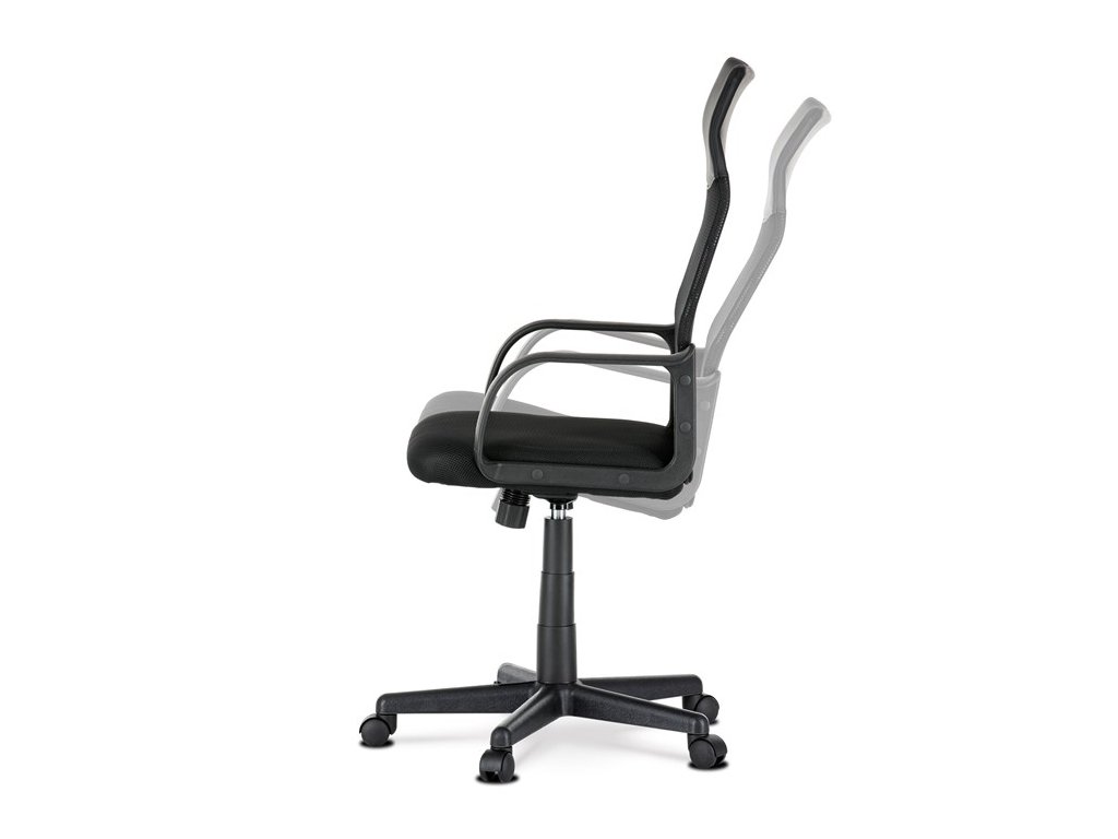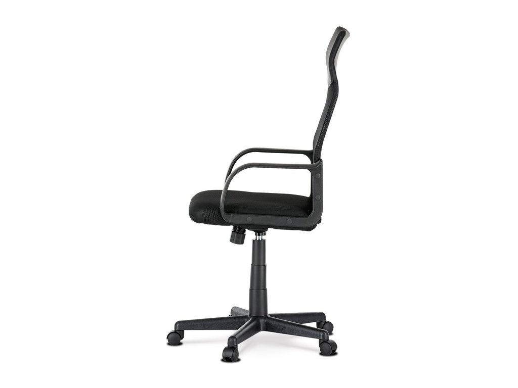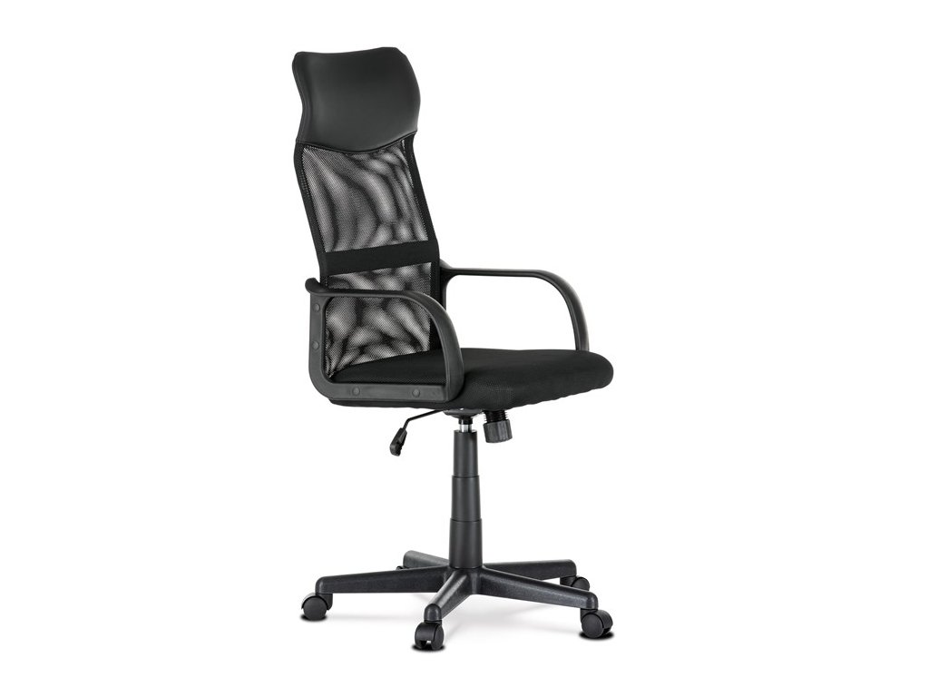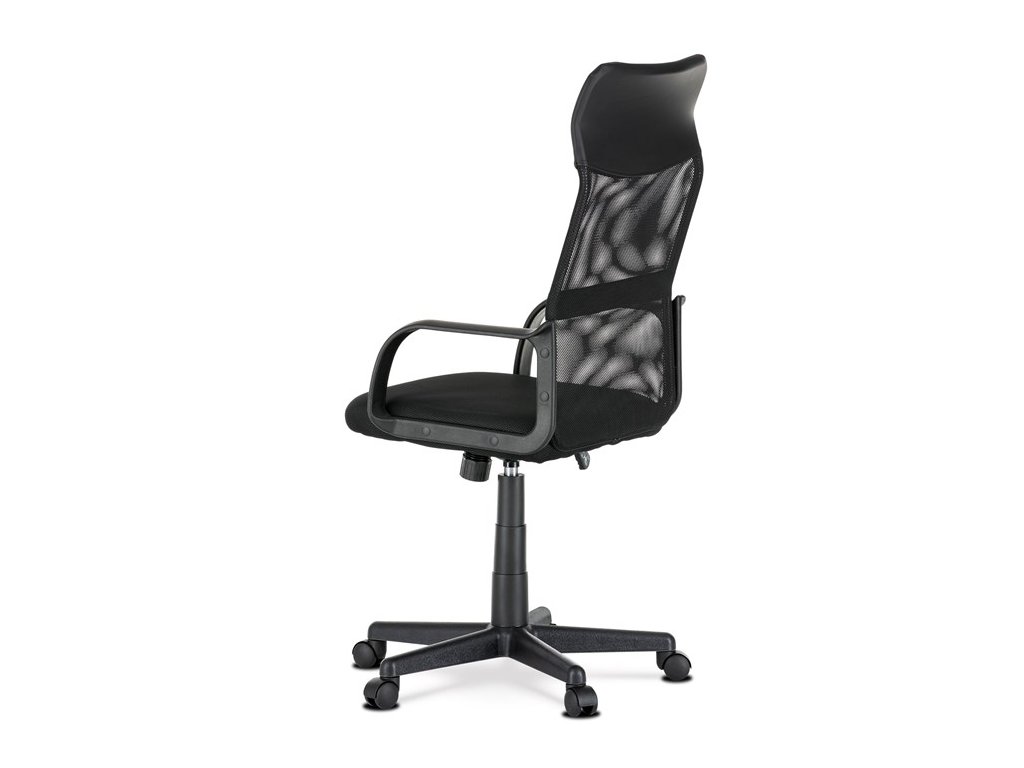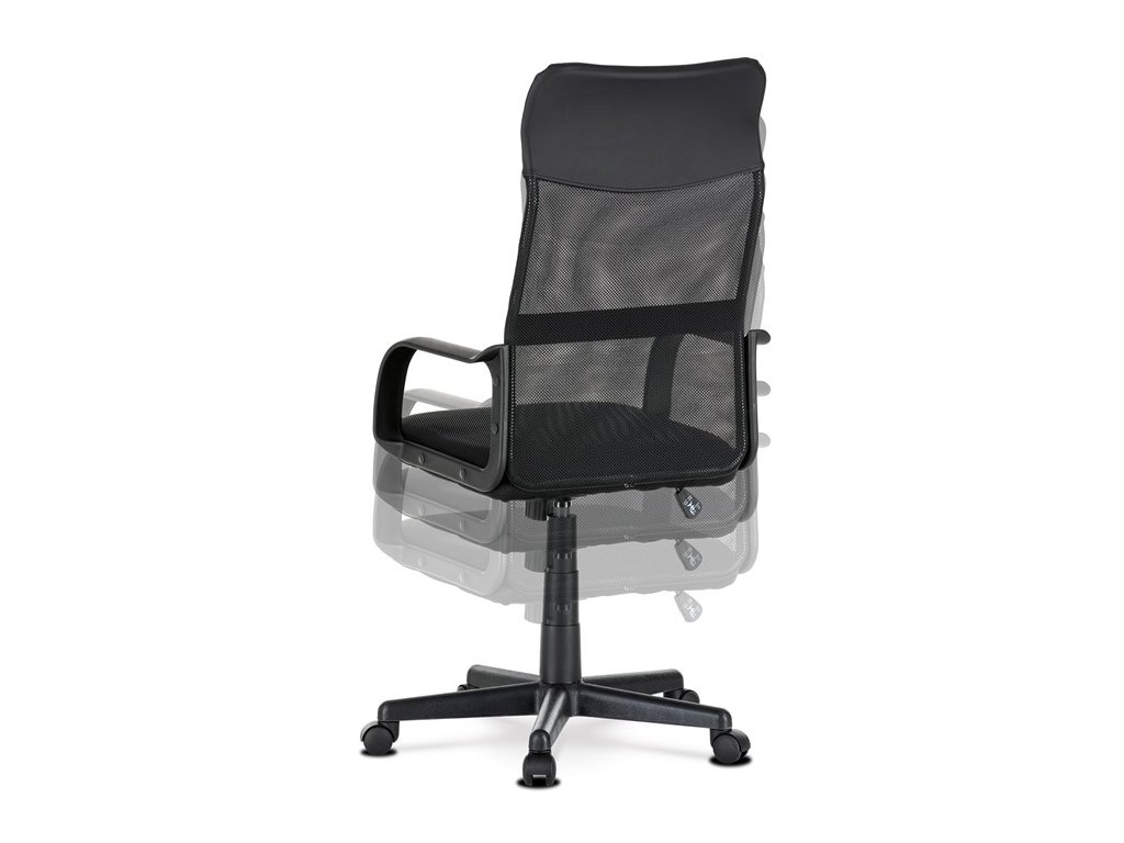 Oblíbená a nadčasová kancelářská židle decentní černé barvy je vhodná nejen do kanceláří, ale například i pro Home office. Vysoký trubkový opěrák s bederní opěrkou je potažen černou síťovinou MESH a v horní části jako podhlavník slouží velmi praktický potah z černé ekokůže. Použité materiály na sedáku i zádové části opěráku zaručují dokonalou prodyšnost. Příjemný polstrovaný sedák je potažený černou látkou MESH. Výplň je v kvalitní PU pěny, která zaručuje příjemné dlouhodobé sezení. Ruce si můžete pohodlně opřít o 6 cm široké černé plastové područky s velkou ložnou plochou 35 cm. Područky zároveň slouží jako velmi pevné spojovací díly sedáku s opěrákem. Díky kvalitnímu plynovému pístu je židle výškově nastavitelná, vybavená houpacím mechanismem a velkým aretačním šroubem na úpravu tuhosti pohupu, který je umístěn pod sedákem. Správnou stabilitu a pevnost zajišťuje pětiramenný černý plastový kříž o pr. 60 cm s plastovými kolečky vhodnými na koberce. Nosnost židle je až 120 kg.Doplňkové parametry