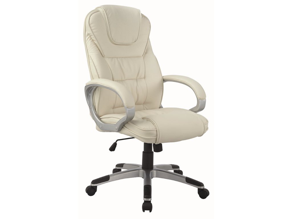 Moderní otáčecí kancelářské křeslo s možností nastavení výšky sedadla. Podstavec a opěrky jsou z kovu, čalounění je vyrobené z velmi kvalitní ekokůže .Výška sedadla je v rozmezí 44 - 50 cm, celková výška je 112 - 118 cm.Doplňkové parametry