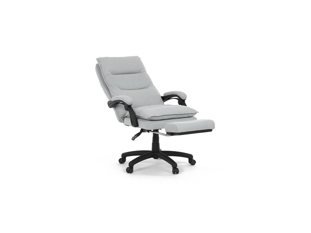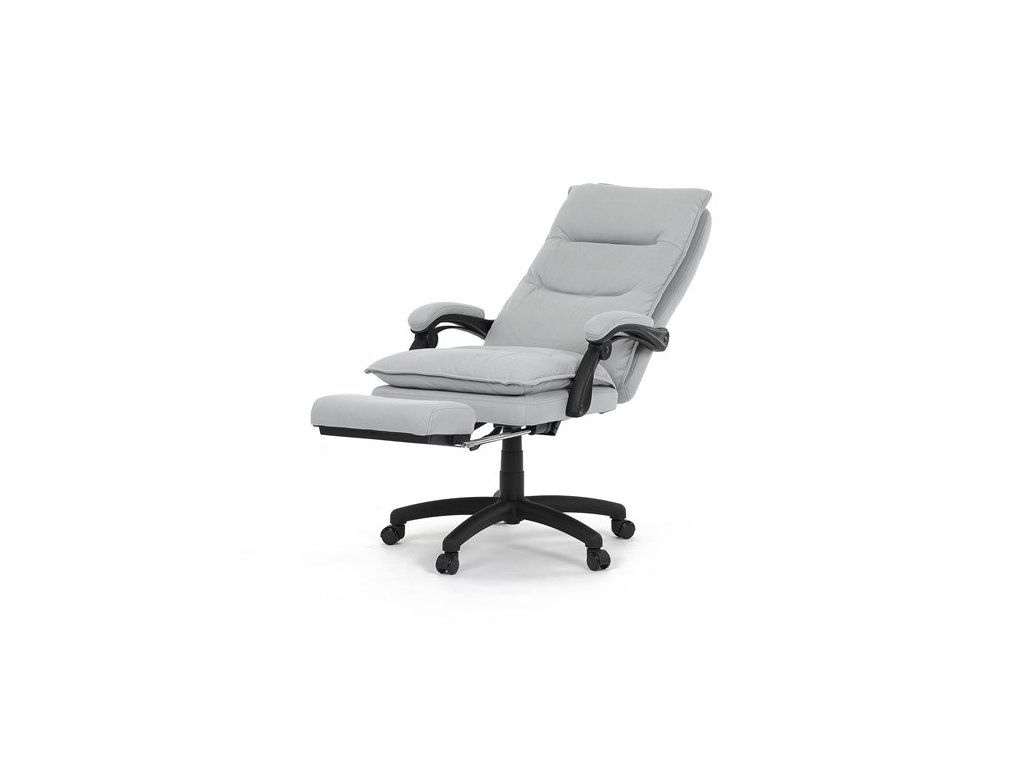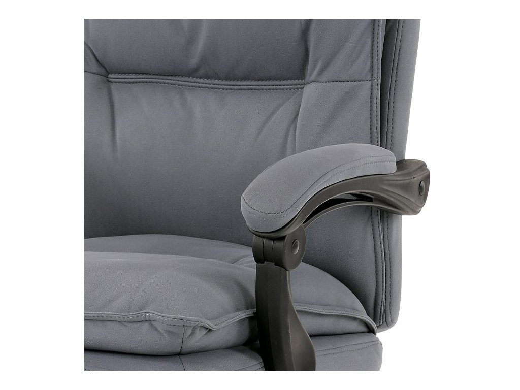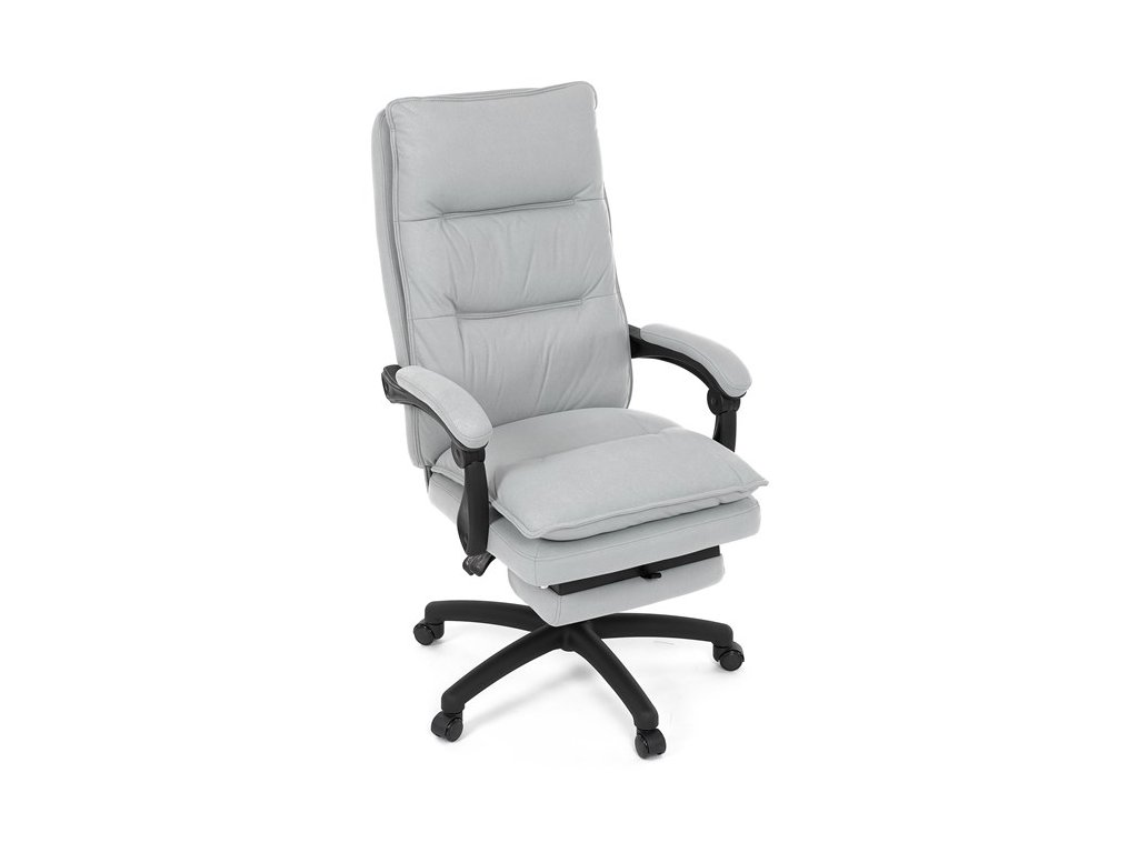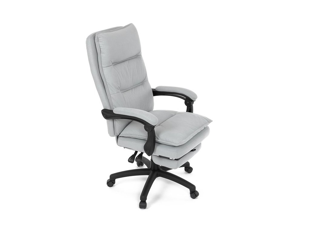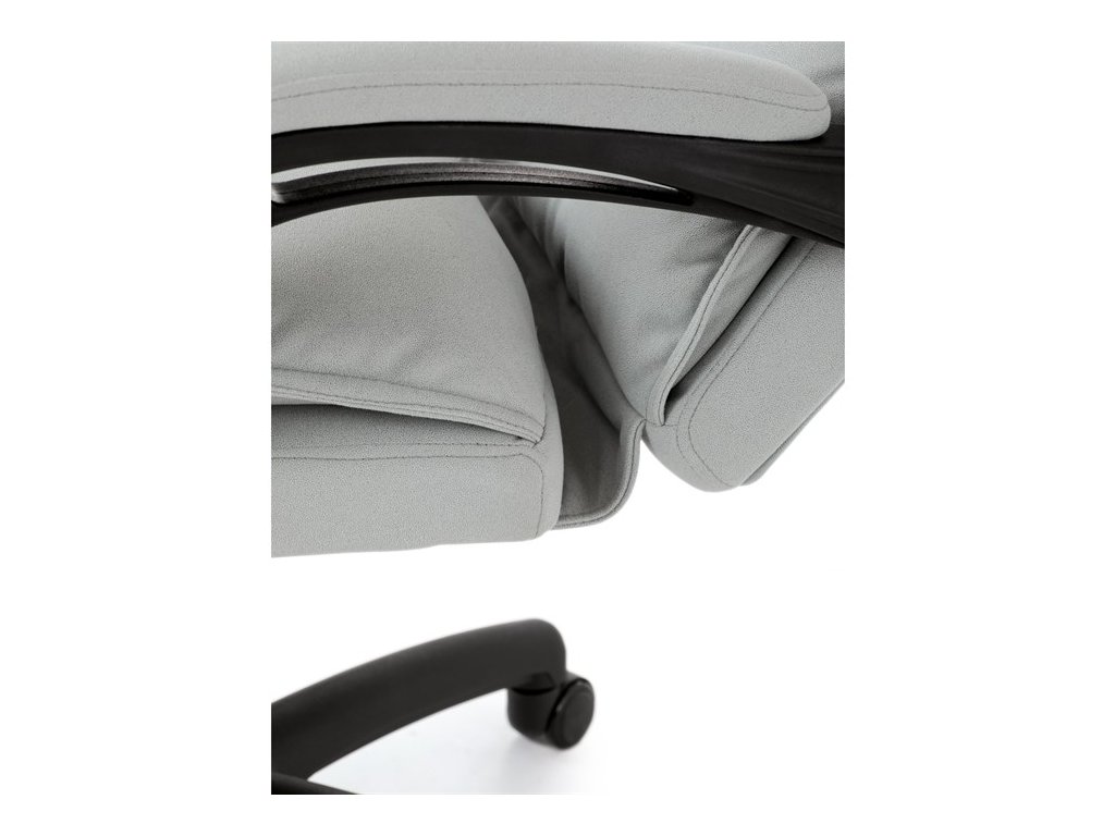 Luxusní kancelářské křeslo z kolekce TOP manager. Jedná se o moderní designové křeslo, navržené pro náročnou kancelářskou práci anebo jen relaxační lenošení. A to v maximálním pohodlí a při dokonalé ergonomii sezení či ležení.Potah je šedé hladké látky. Výplň dvojitého sedáku i vysokého opěráku je z velmi kvalitní PU pěny.