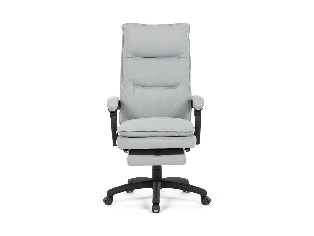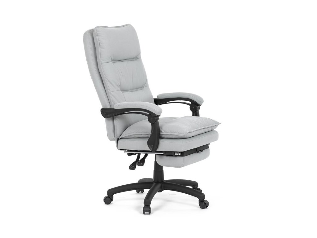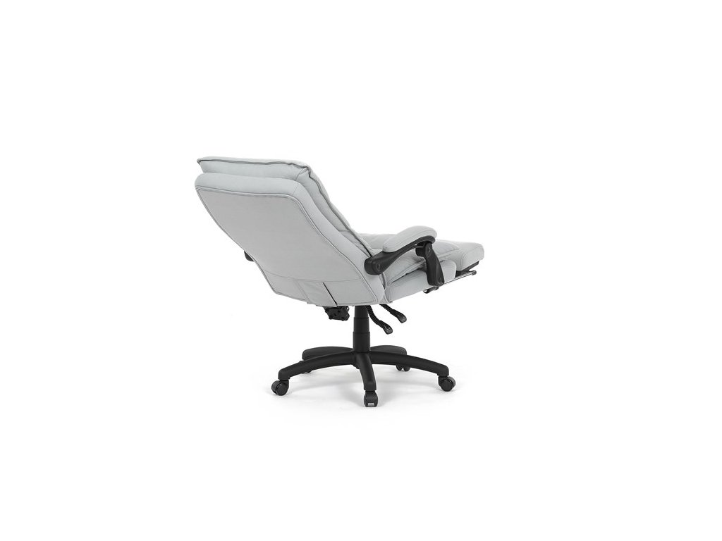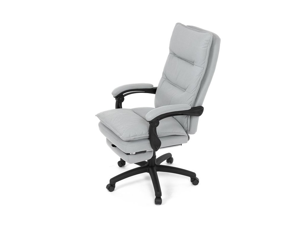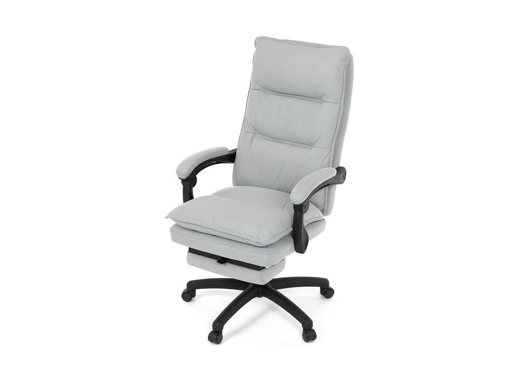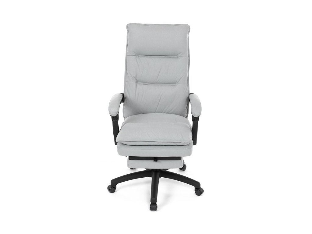 Luxusní kancelářské křeslo z kolekce TOP manager. Jedná se o moderní designové křeslo, navržené pro náročnou kancelářskou práci anebo jen relaxační lenošení. A to v maximálním pohodlí a při dokonalé ergonomii sezení či ležení.Potah je šedé hladké látky. Výplň dvojitého sedáku i vysokého opěráku je z velmi kvalitní PU pěny.