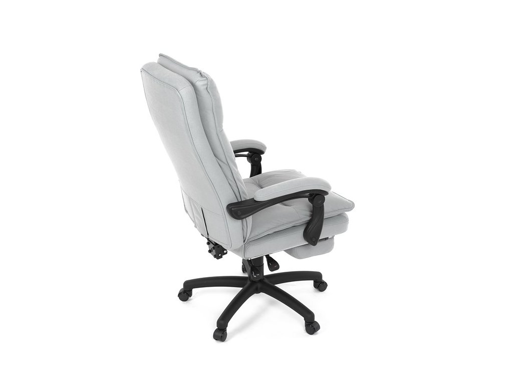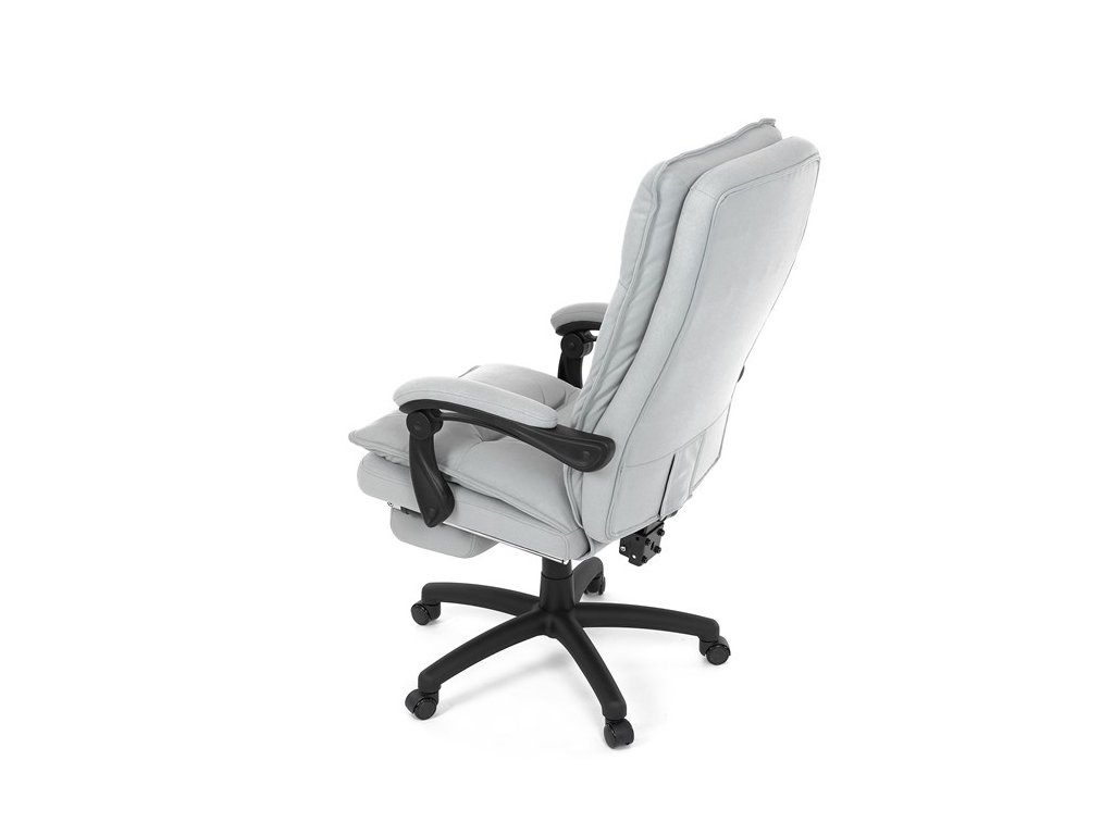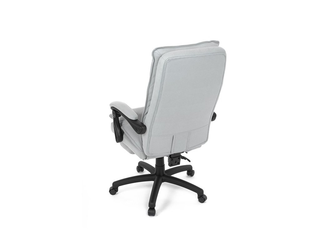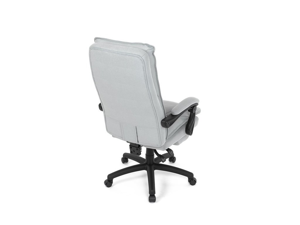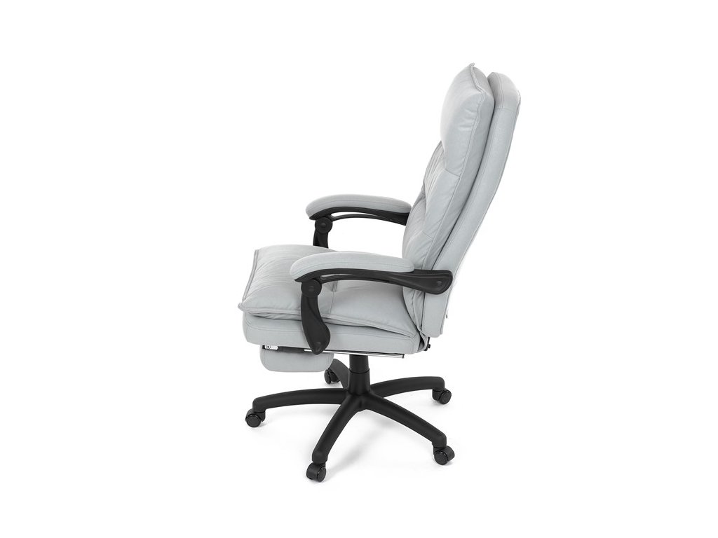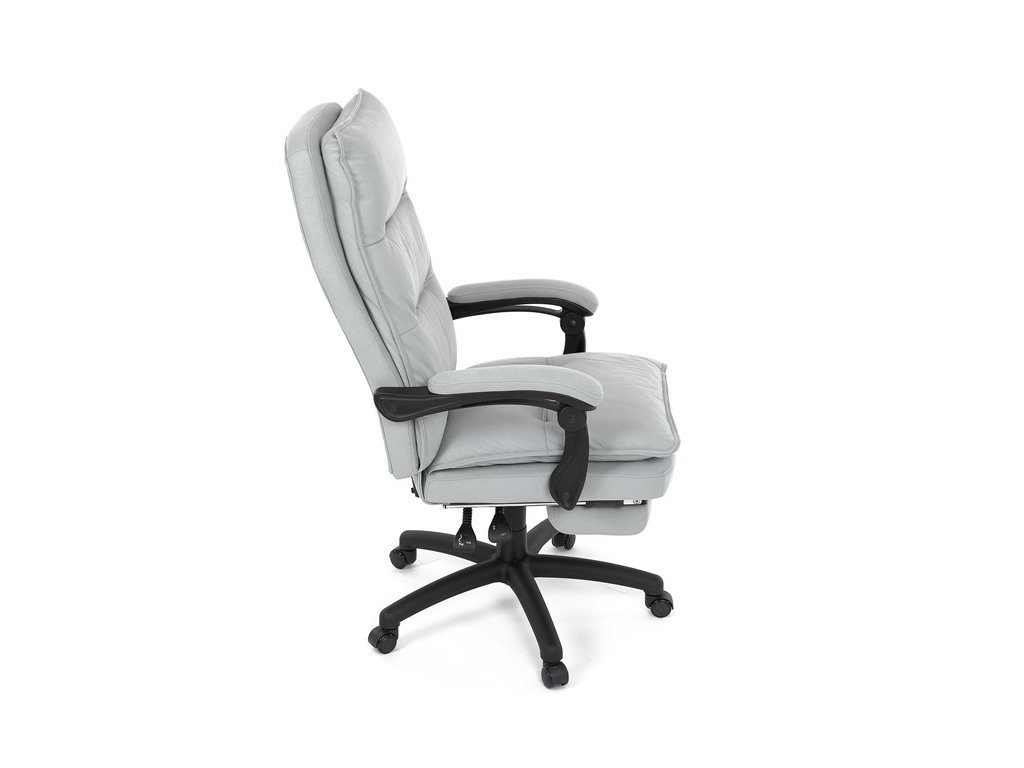 Luxusní kancelářské křeslo z kolekce TOP manager. Jedná se o moderní designové křeslo, navržené pro náročnou kancelářskou práci anebo jen relaxační lenošení. A to v maximálním pohodlí a při dokonalé ergonomii sezení či ležení.Potah je šedé hladké látky. Výplň dvojitého sedáku i vysokého opěráku je z velmi kvalitní PU pěny.