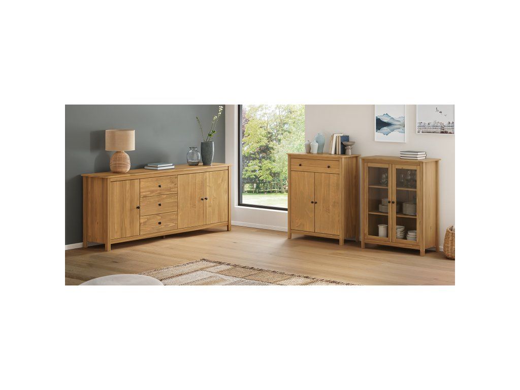 Pokud hledáš komodu z masivu v medovém odstínu s velkým úložným prostorem a klasickým vzhledem, TORINO 8064V je spolehlivá volba.