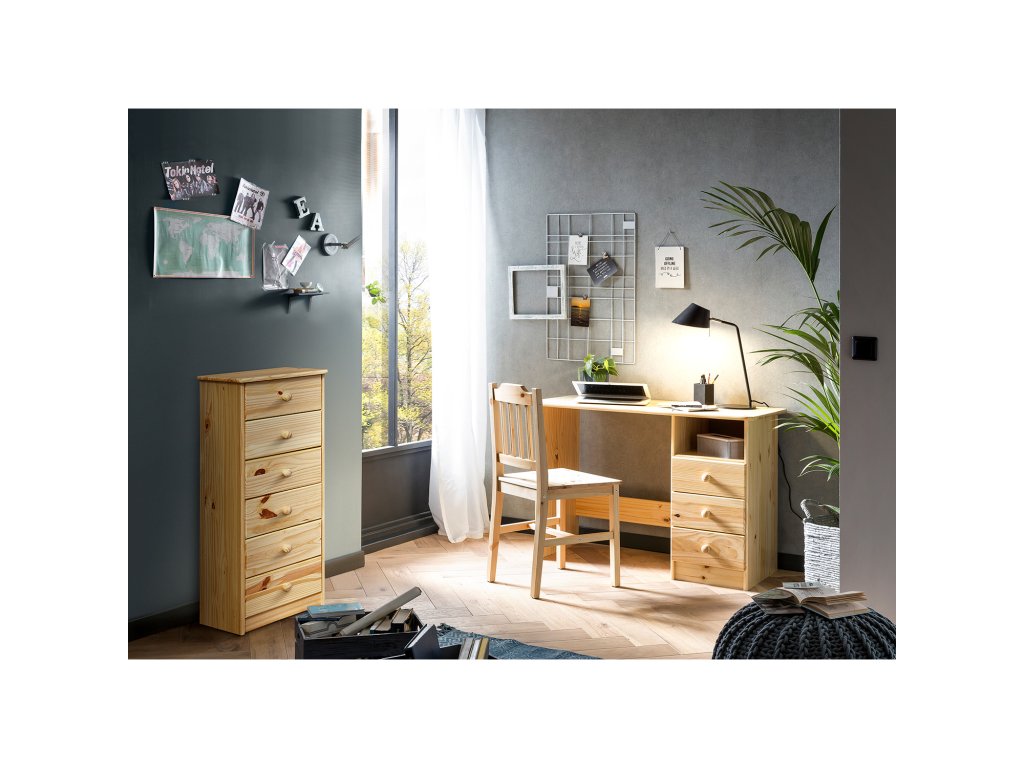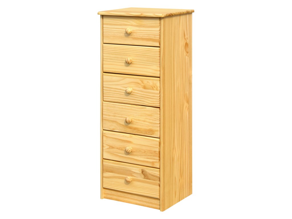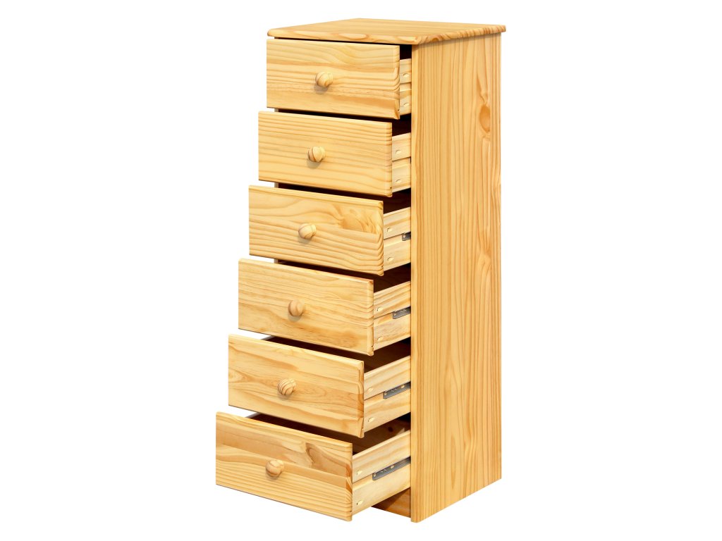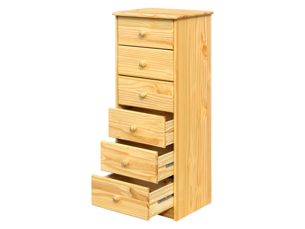 Materiál masiv borovice, lakované provedení6 zásuvek s kovovými pojezdy, hloubka zásuvky 27,5 cm