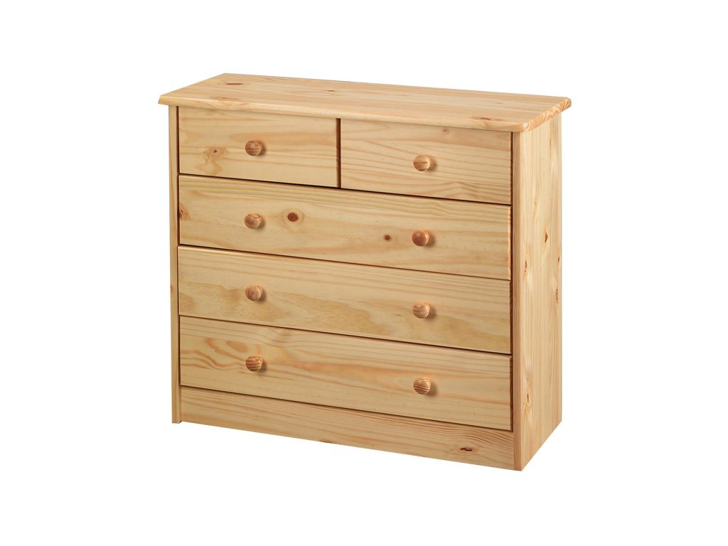 materiál masiv borovice, lakované provedení 2 úzké a 3 široké zásuvky s kovovými pojezdy, hloubka zásuvky 27,5 cmDoplňkové parametry
