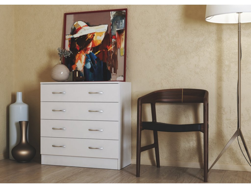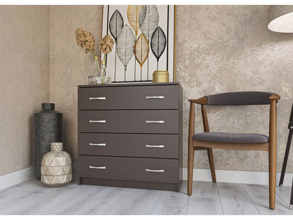 Komoda se čtyřmi zásuvkami je vyrobená z kvalitní laminátové desky v barevném provedení dub sonoma. Úchyty jsou kovové. Dodáváme v demontovaném stavu.Doplňkové parametry