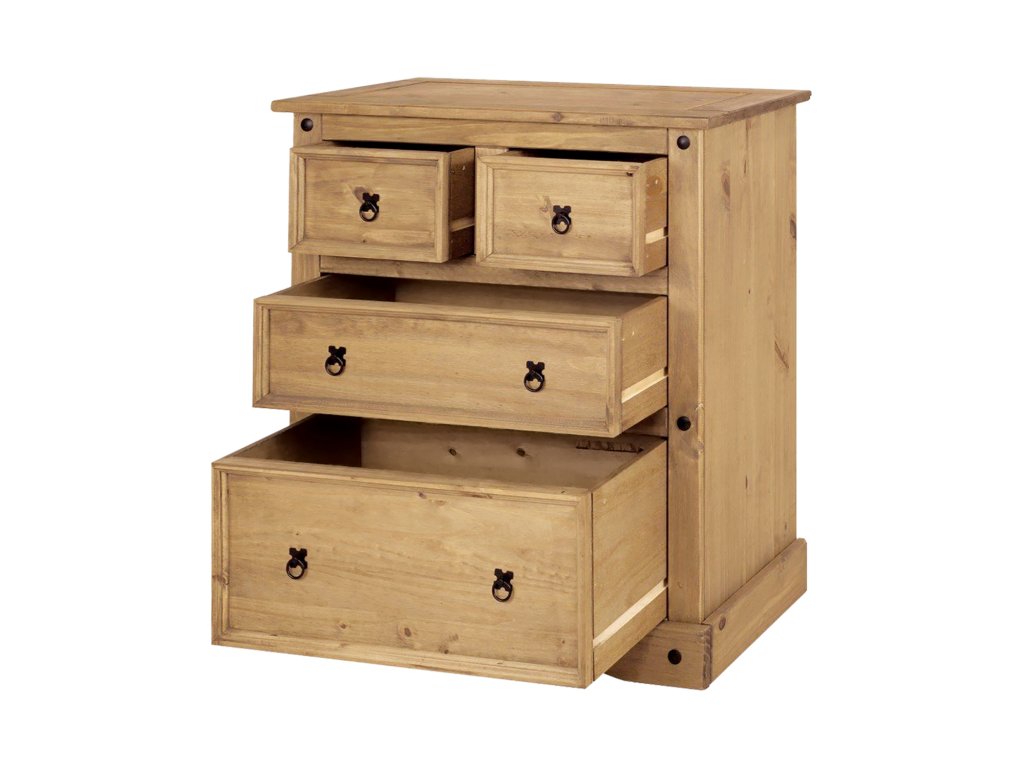 materiál masiv borovice voskovaná v medovém odstínu2 menší a 2 větší zásuvky,