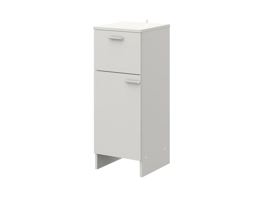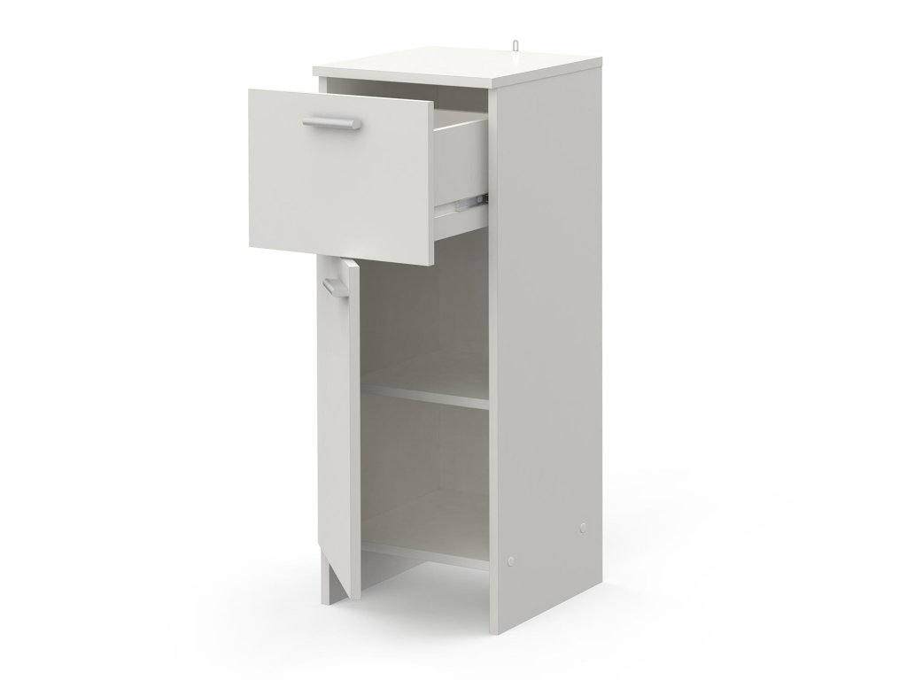 barevné provedení bílá, jedny dvířka, jedna police, rozměr police (š/h) 28 × 28 cm jedna zásuvka s kovovými pojezdy, rozměr zásuvky (š/h/v) 25 × 24 × 15 cmDoplňkové parametry