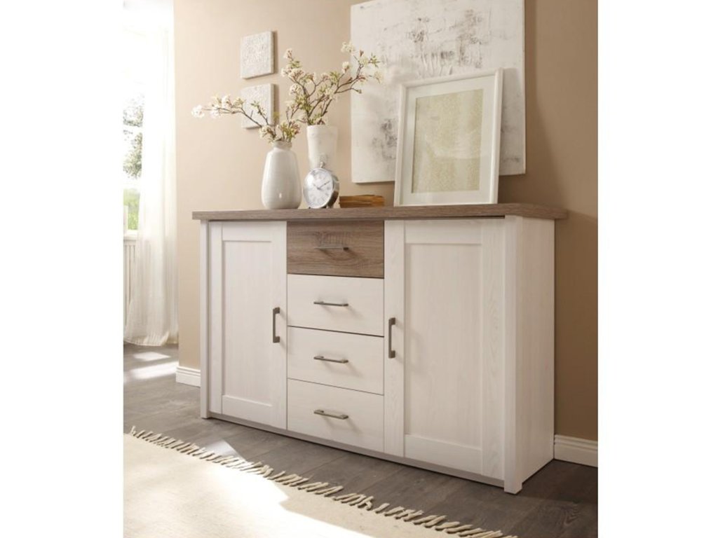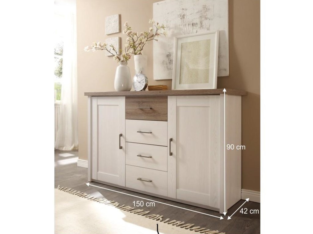 Komoda LUMERA v přírodním dekoru dub sonoma truflový / pinie bílá skvěle doplní moderní interiér a poskytne dostatek místa pro vaše věci.✔ Rozměry: 150×42×90 cm