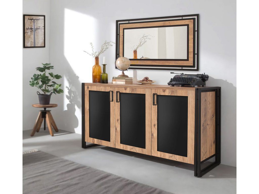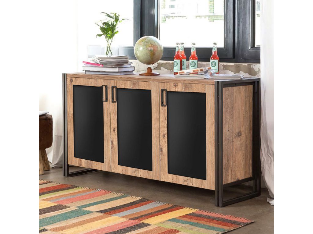 Komoda CASORIA v industriálním stylu kombinuje dekor borovice a černé kovové prvky pro moderní a nadčasový vzhled.