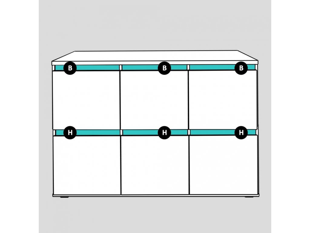 Typovo dodávame celodezénovú komodu. Farebné pásy je možné doobjednať z UNI farieb a dezénov navarra a wenge. K tejto komode potrebujete tieto lišty: REA AMY LIŠTA B-3ks + H-3ks.