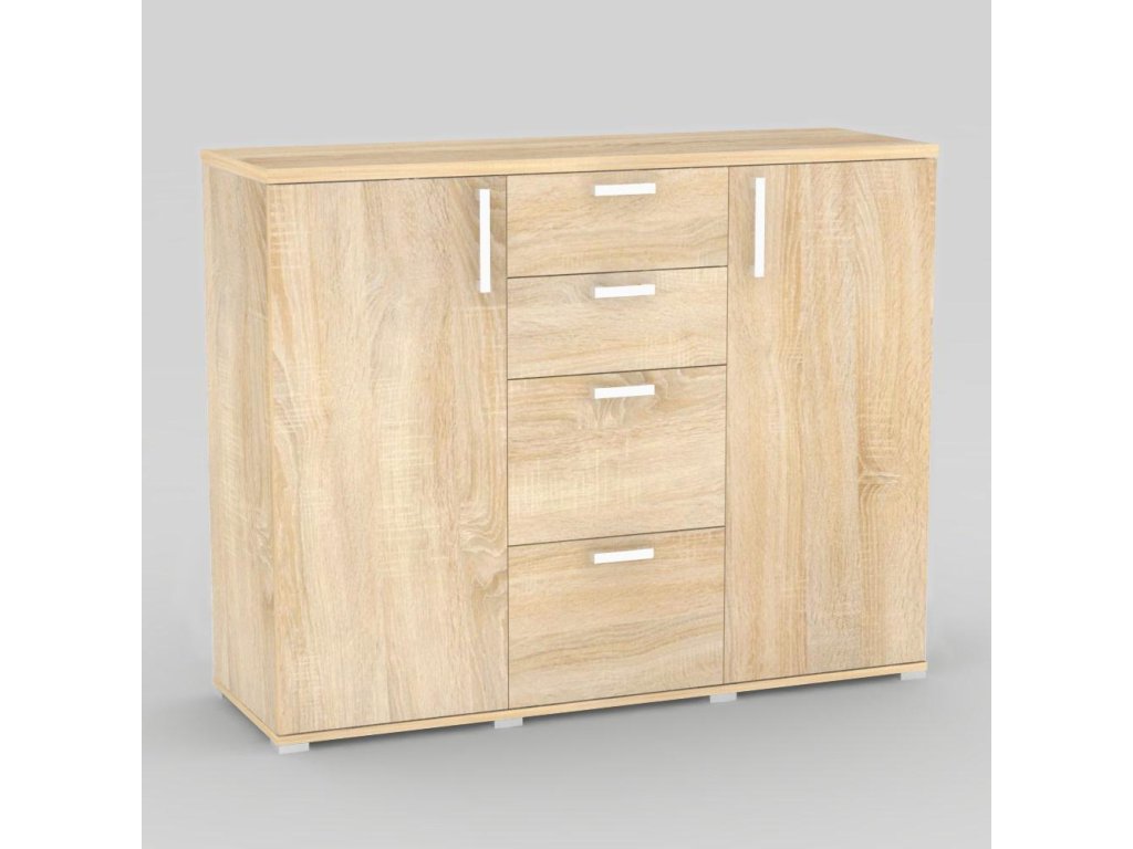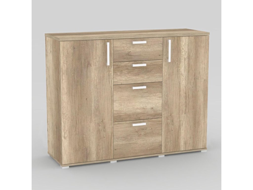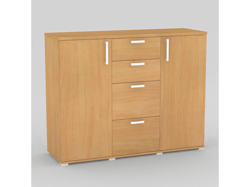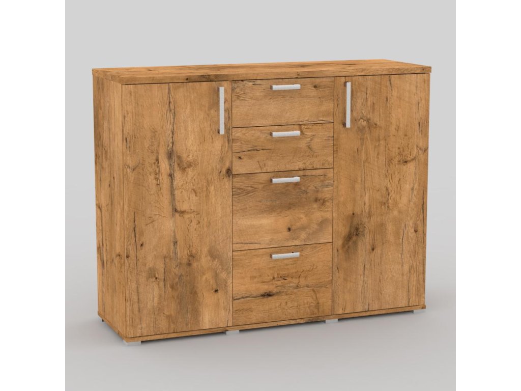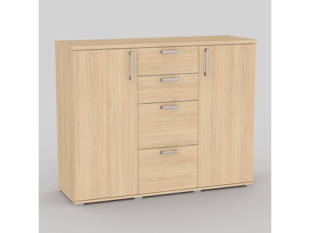 Komoda kombinovaná 2x dvířka + 4x zásuvka. Hloubka zásuvky 40 cm, použitý plnovýsuv, hladký, tichý chod, vysune se celá zásuvka. Rozměr: š130 x v103 x h43 cm. Materiál: DTD laminovaná, ABS hrany 0,5mm a 2mm, vrchní deska má tloušťku 25mm. Dodáváme v demontu.