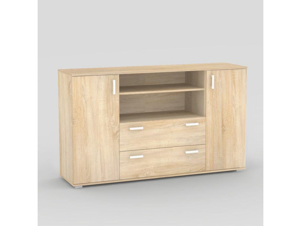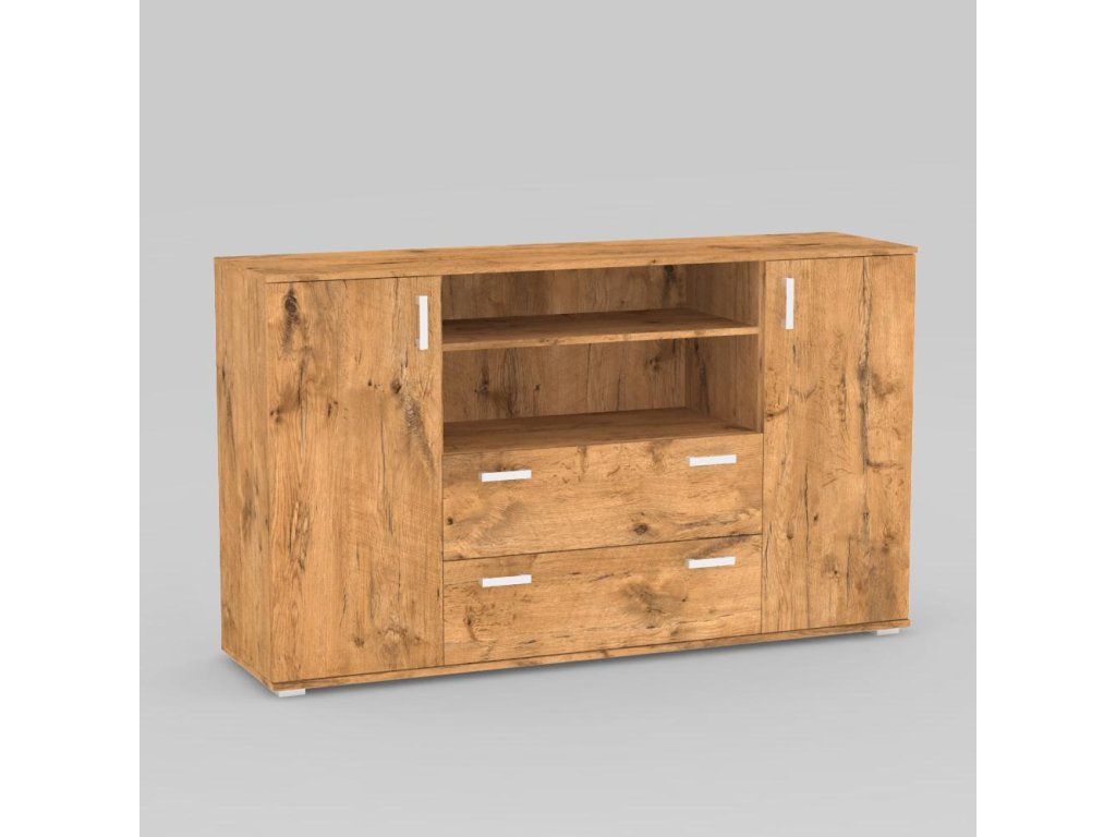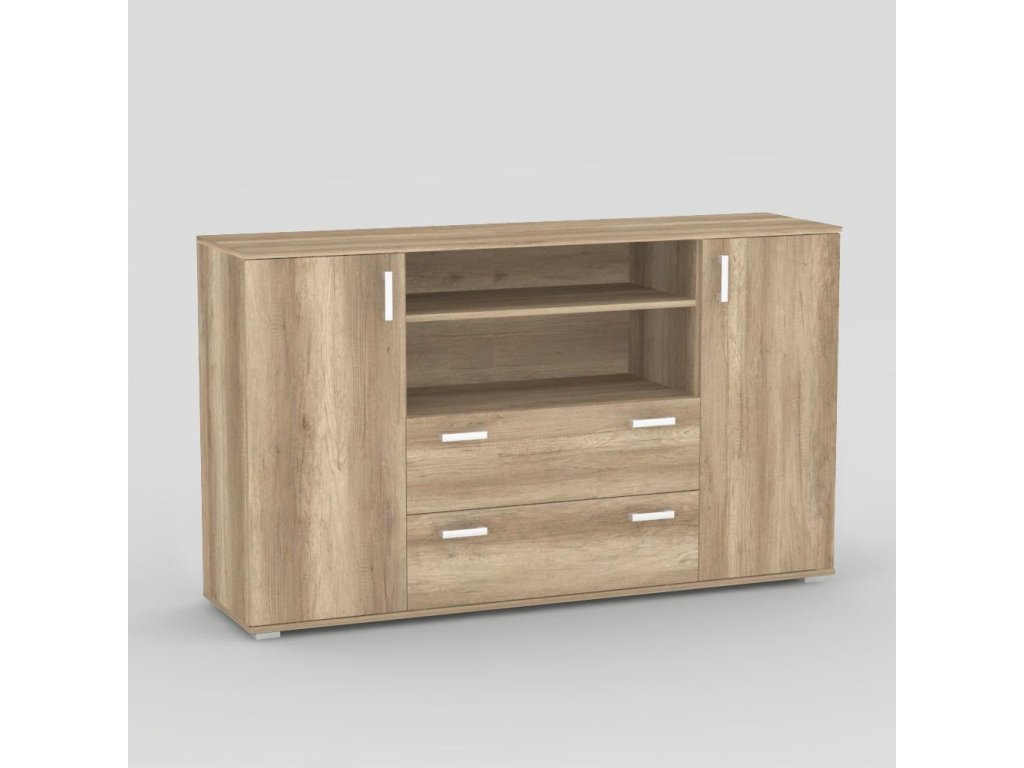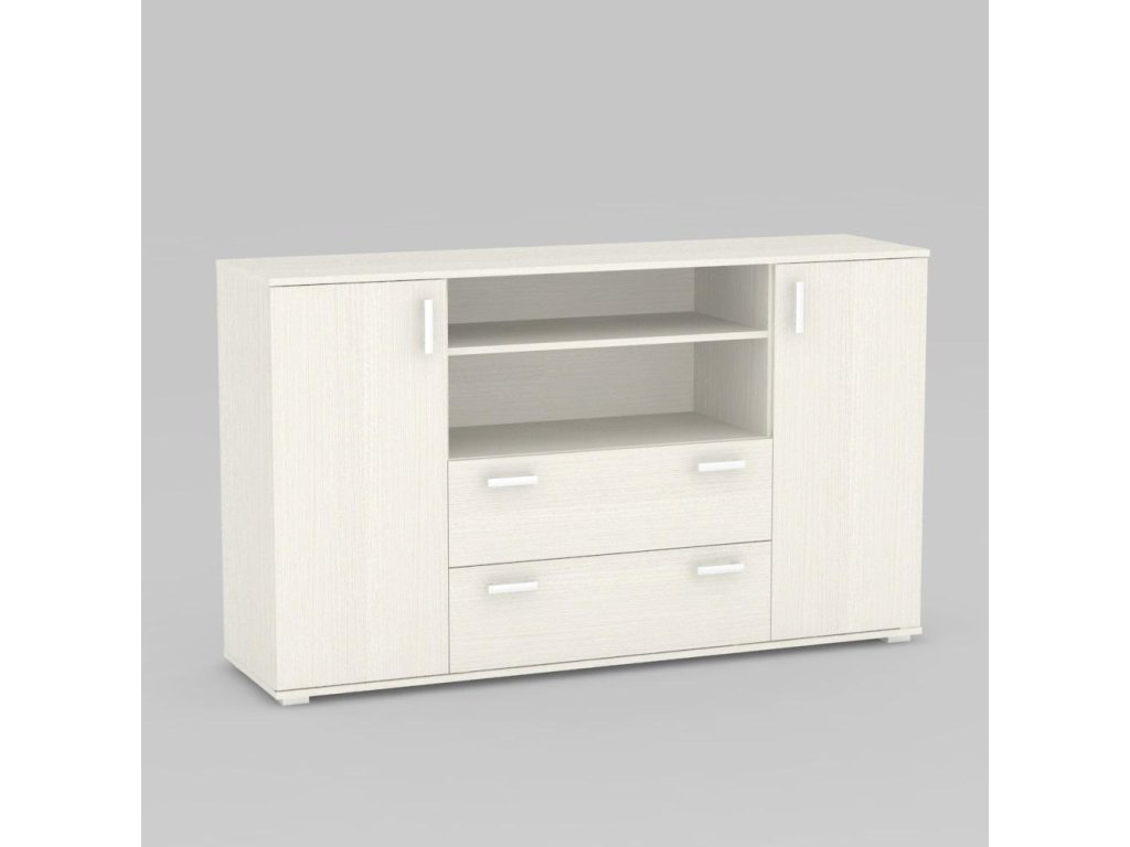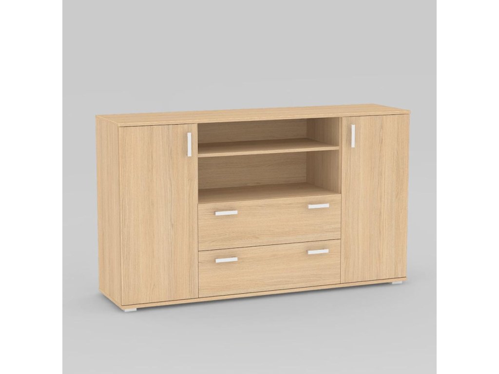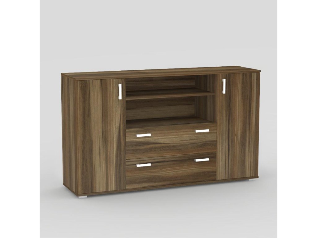 Komoda kombinovaná. Rozměr: š160 x v94 x h42 cm. Materiál: DTD tl.16mm s ABS 0,5mm. Nožičky plastové, stříbrné, výšky 2cm.