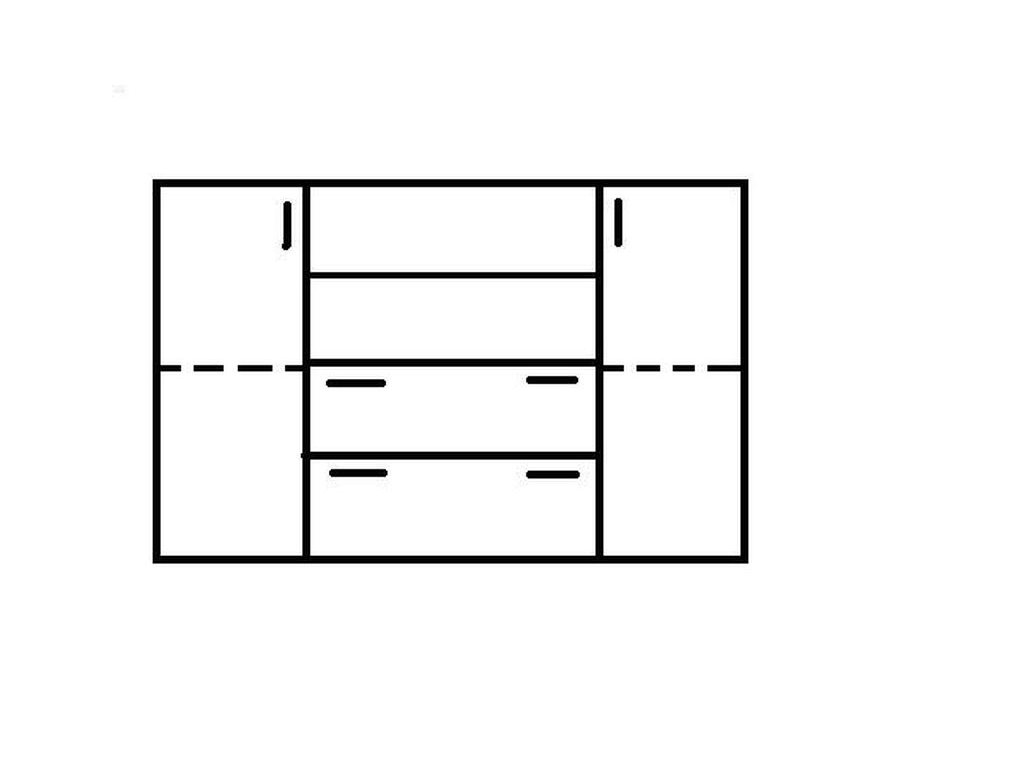 Vnitřní vybavení komody je znázorněno na perokresbě. Police na perokresbě jsou započteny v ceně komody.