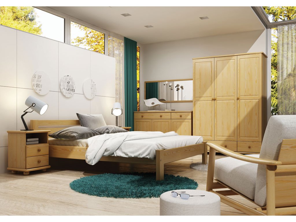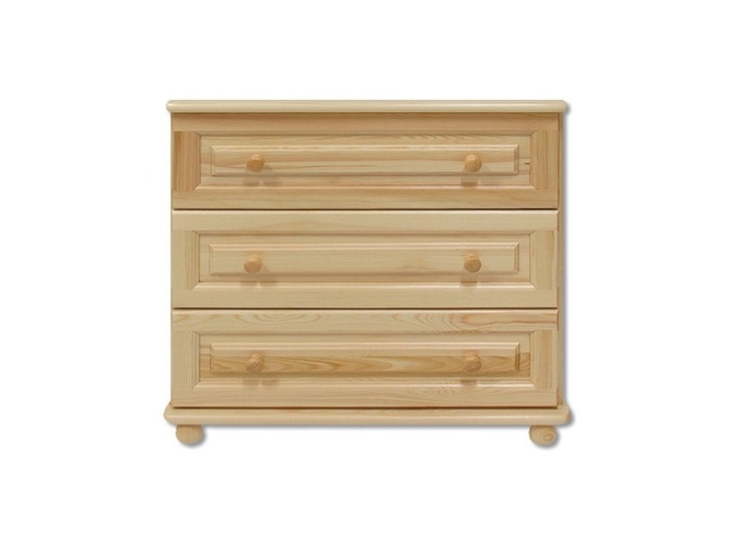 Komoda se 3 zásuvkami, která je vyrobena z kvalitního borovicového dřeva, které přinese do Vaší domácnosti tu správnou přírodní atmosféru a vůni dřeva. Základní borovicové dřevo je bez moření, můžete si však objednat i moření olše, dub, grey nebo ořech za 10% příplatek. Jednotlivé části nábytku tohoto výrobce lze různě kombinovat, čímž docílíte dokonalé harmonie a přitažlivého vzhledu Vašeho domova.Poněvadž má dřevo povrchovou úpravu proti škůdcům a vy budete mít zájem namořit si nábytek sami, napište do poznámek k objednávce - "Bez povrchové úpravy".