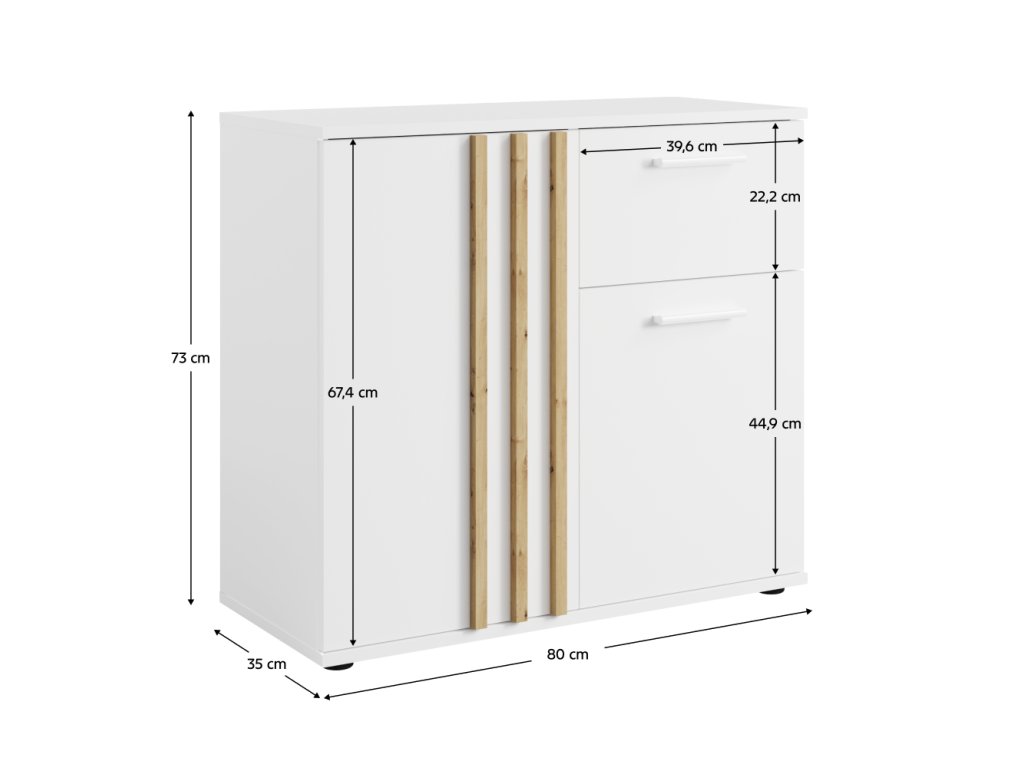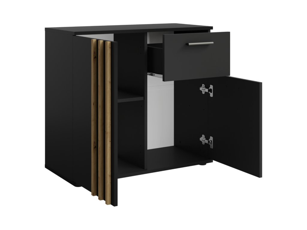 Komoda TOLIS TYP 4 v dekoru černá/dub artisan kombinuje moderní design a praktické řešení úložného prostoru. Ideální do obývacího pokoje či ložnice.✔ Rozměry: 80×35×73 cm