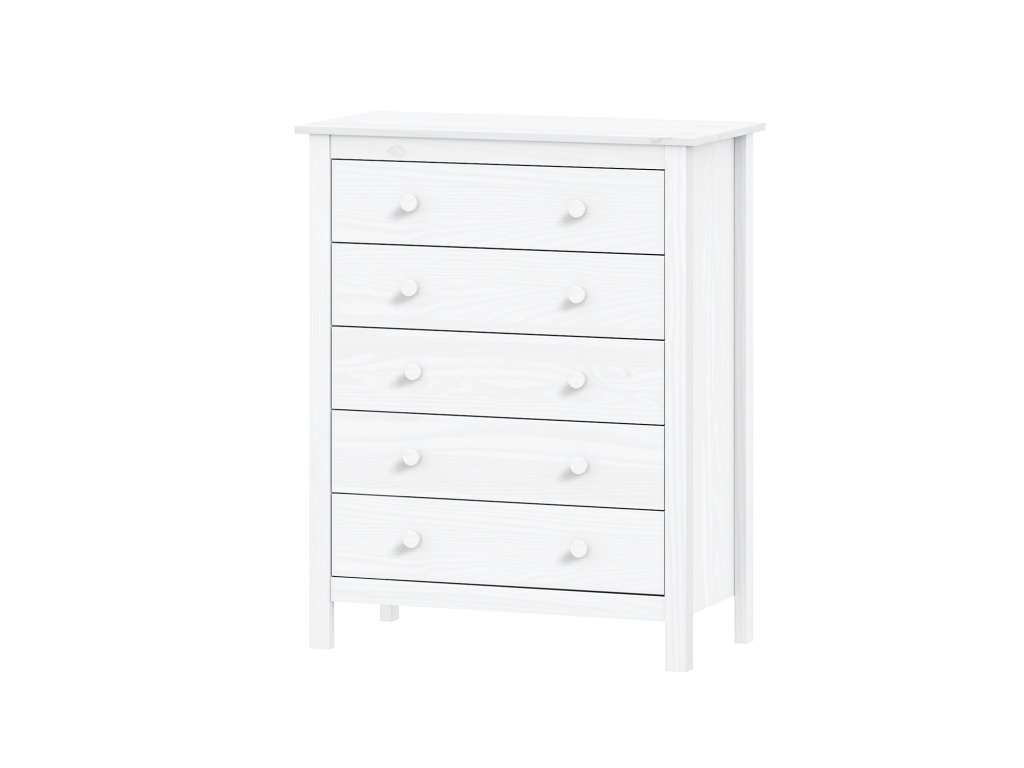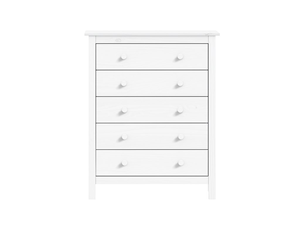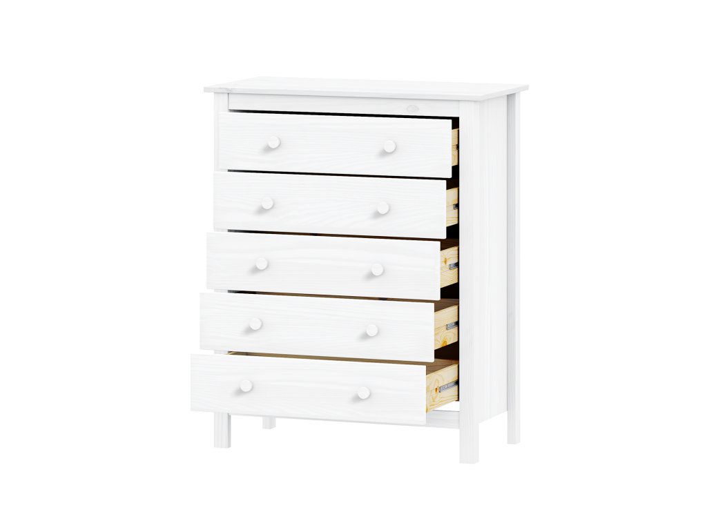 Materiál masiv borovice, barevné provedení bílý lakpět zásuvek s kovovými pojezdy