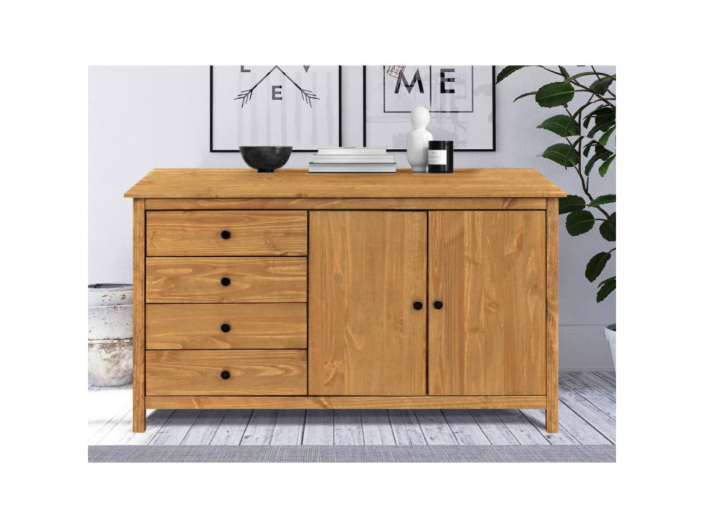 4 zásuvky s kovovými pojezdy, 2 plné dveře, 1 police