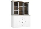 Stylová sestava příborníku a nástavce TORINO 68095BK v bílém laku z masivní borovice s kovovými úchytkami. Ideální do kuchyně či jídelny.