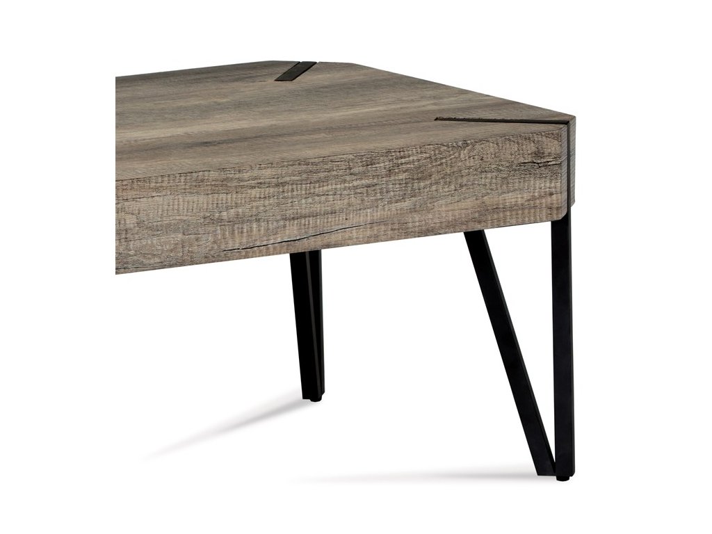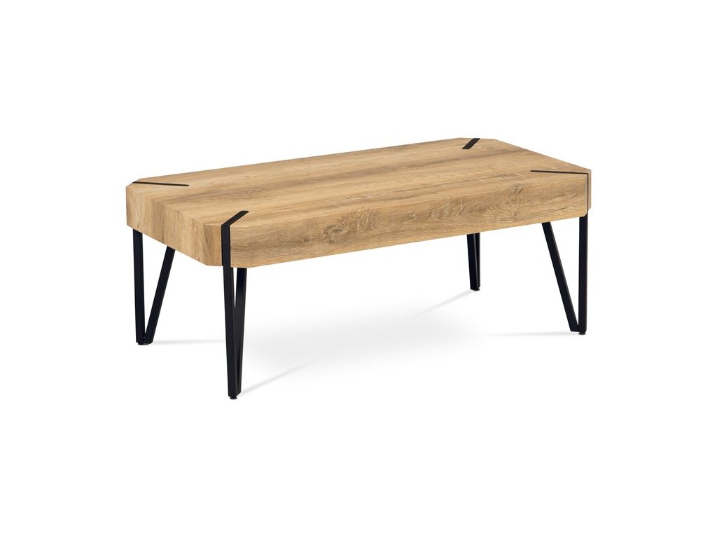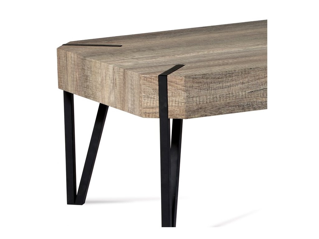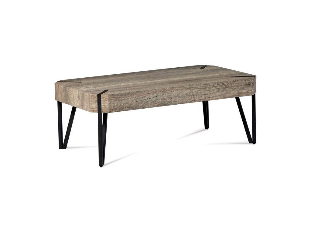 Moderní konferenční stolek z 1,5 cm tlusté MDF desky v dekoru dub Canyon Grey a s výškou lubu 10 cm. Podnož je z pevného kovu a je lakovaná matnou černou barvou. Součástí designové podnože jsou černé plastové kluzáky, které snižují riziko poškození Vaší podlahy.Doplňkové parametry