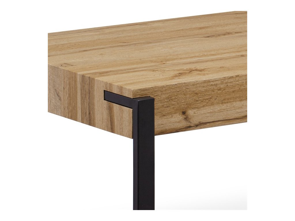 Konferenční stolek v industriálním stylu. Deska a lemy jsou MDF v dekoru divoký dub, o výšce 10 cm. Kovové nohy jsou obdélníkového průřezu 4 x 2 cm a v černém matném laku.Doplňkové parametry