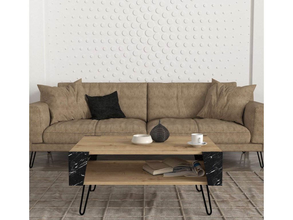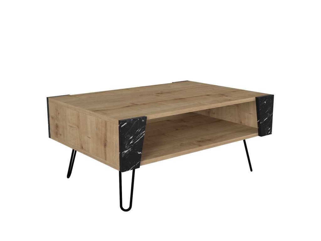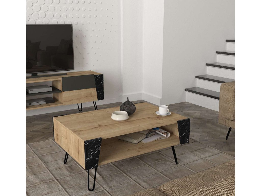 Konferenční stolek ARTHUR spojuje moderní design s praktičností. Elegantní kombinace světle hnědé a mramorové barvy skvěle doplní každý obývací pokoj a poskytuje praktický odkládací prostor.