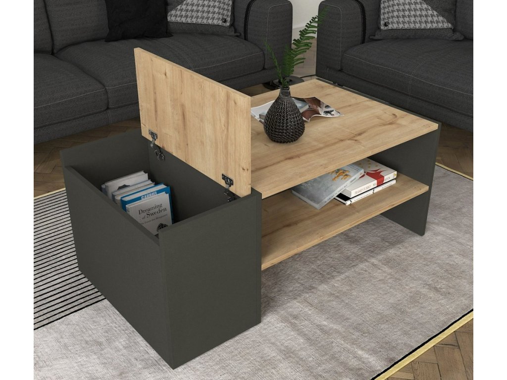 Konferenční stolek je vyroben z kvalitního lamina o tl.18 mm hraněné PVC páskou, odolného proti poškrábání v kombinaci barev sapphire/antracit. Stolek má na boční straně praktický úložný prostor s vyklápěcí horní deskou. Dodáváme v demontovaném stavu.Doplňkové parametry