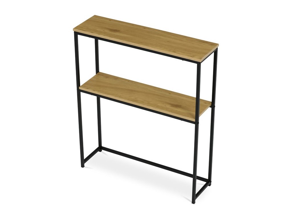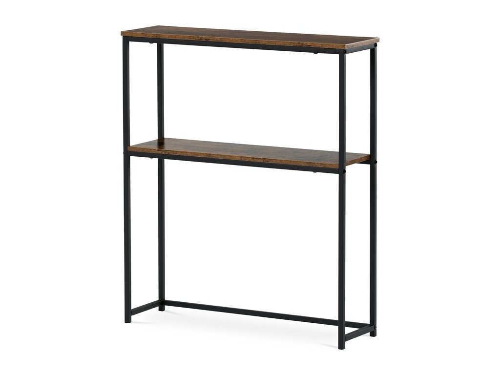 Konzolový stolek značky Autronic je skvělým doplňkem pro moderní i industriální interiéry. Spojení dekoru divokého dubu s černým kovovým rámem vytváří stylový kontrast, který zaujme na první pohled. Díky praktické polici nabízí stolek dostatek prostoru pro dekorace, knihy nebo drobnosti. Jeho kompaktní rozměry umožňují snadné umístění i v menších prostorech, například v předsíni, obývacím pokoji nebo pracovně. Tento stolek kombinuje funkčnost s designem, a proto se stane oblíbeným prvkem ve vaší domácnosti.Doplňkové parametry