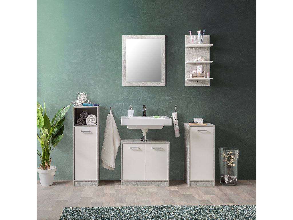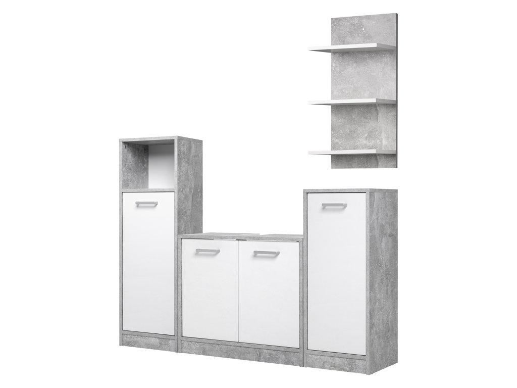 barevné provedení bílá s detaily betonu, 2 dvířka skříň (š/h/v): 60 × 28 × 55, 1 police 1 dveře skříň (š/h/v): 31,5 × 28 × 76,5, 1 police 1 dveře a 1 police skříň (š/h/v): 31,5 × 28 × 101, 1 police nástěnná skříňka, 3 policeDoplňkové parametry