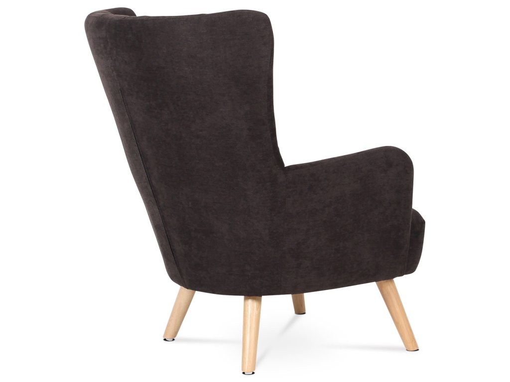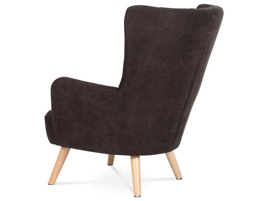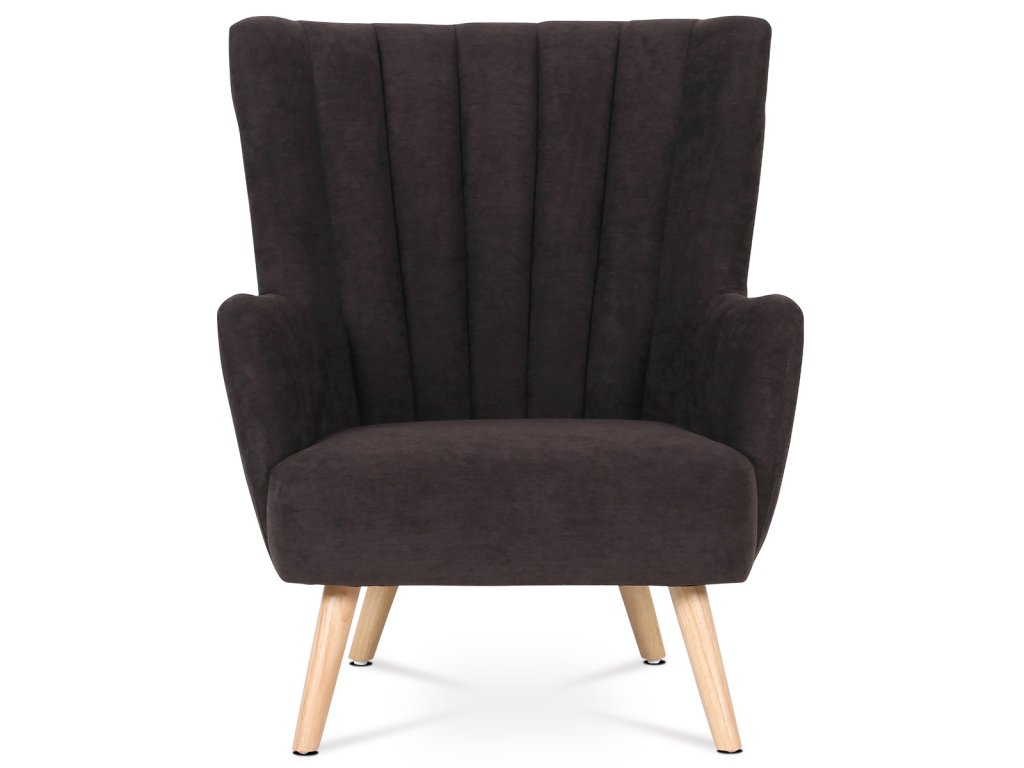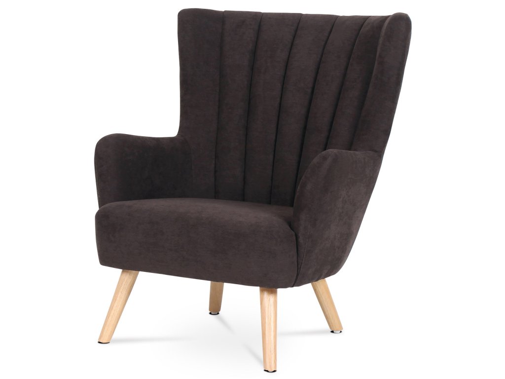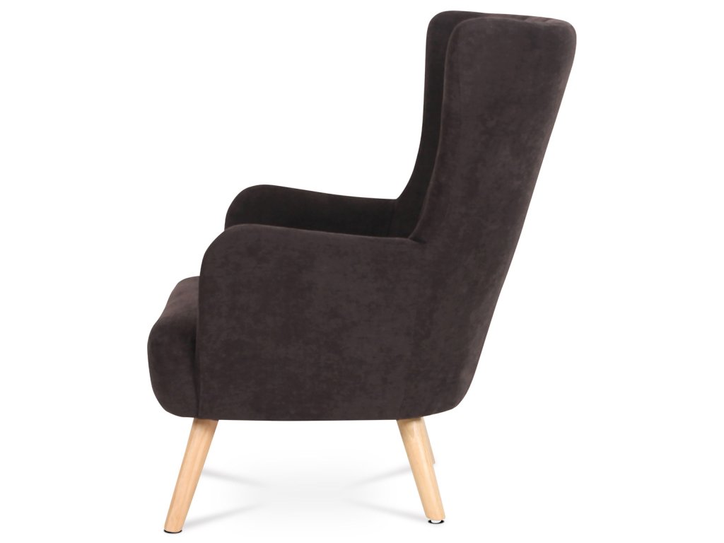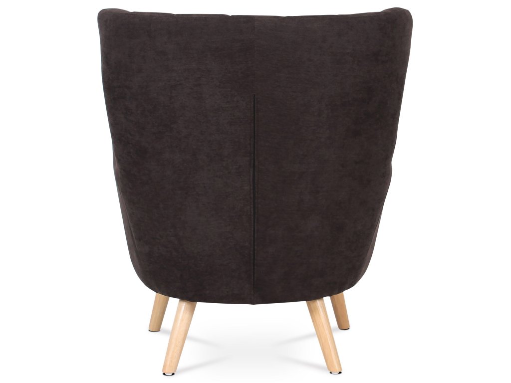 Masivní retro křeslo s dekorativním prošitím opěráku okouzluje svým designem a je poutavým prvkem obytného prostoru zařízeného ve stylu moderním nebo třeba i hygge. Díky vysokému opěráku a pohodlným područkám zajišťuje křeslo více jak příjemné posezení a relaxaci po náročném dni.Potah je z tmavě hnědé látky, kostra křesla z masivu a výplň z kvalitní PU pěny zpevněné v místě sedáku elastickými popruhy. Dřevěné nohy jsou z masivního kaučukovníku, kónické, v přírodním odstínu a lakované. Ze spodu jsou plastové kluzáky, u zadních nohou jsou rektifikovatelné.